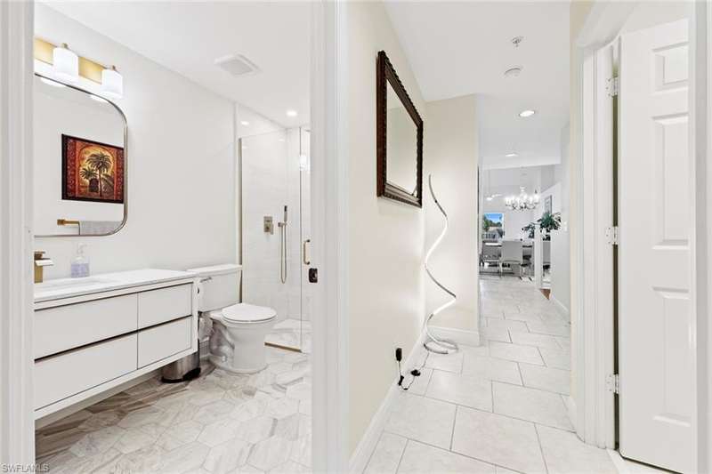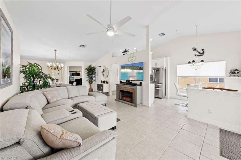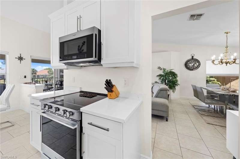Welcome to this beautifully updated 3-bedroom, 2-bathroom lake view coach home with an attached 1-car garage, located in the charming Lakemont Cove neighborhood of Pelican Landing. This stylish residence has been transformed with designer-grade upgrades, including a modern kitchen with quartz countertops, soft-close cabinetry, stainless steel appliances, and sophisticated lighting and fixtures throughout. Vaulted ceilings and an open-concept layout create a bright, airy ambiance, while the screened lanai offers tranquil views of the lake—perfect for relaxing or entertaining. The spacious primary suite features serene water views, a beautifully remodeled en-suite bathroom, and generous closet space, making it a true retreat. Pelican Landing offers an unparalleled lifestyle with resort-style amenities, including a private 34-acre island beach park accessible by boat shuttle, a full-service fitness center, tennis and pickleball courts, and complimentary kayaking and sailing from the community’s marina. Golf enthusiasts can enjoy optional membership at the private, 36-hole Golf Club "The Nest". Just minutes from your door, you'll find the best of Southwest Florida shopping and dining—from the boutiques and restaurants at Coconut Point and Promenade at Bonita Bay to the upscale options at Mercato and Waterside Shops. With luxury updates, stunning views, and access to both nature and nearby conveniences, this coach home truly has it all.