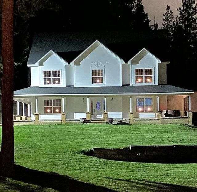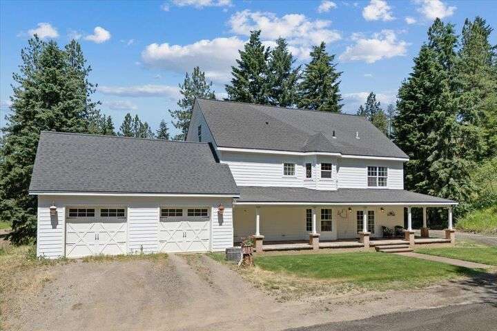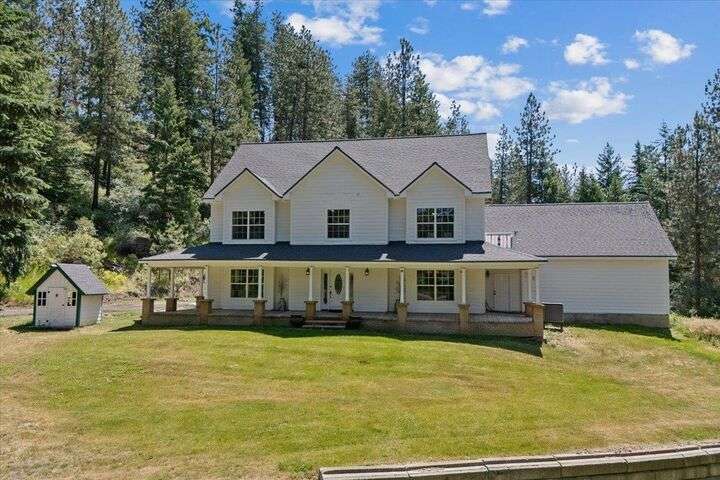 Escape to serene seclusion on 17.28 private acres in Mead, WA. This luxurious 4-level, 5,300 sq ft estate showcases a gourmet kitchen, formal dining, and expansive living areas. 4BR's/3BA with 2 additional rooms perfect for office and gym. Enjoy abundant wildlife and peaceful surroundings while staying close to city amenities. Near Mt. Spokane, it offers the perfect mix of privacy and convenience. Relax on the wraparound porch or race down your private ¼-mile sledding hill. A 50 GPM well ensures reliable water. The entertainer’s finished basement features a home theater, bar, and pool table. Parking is easy with an attached 2-car garage plus a massive 2,400 sq ft shop with loft for hobbies, storage, or projects. Built with durable, energy-efficient ICF construction, this property is as practical as it is stunning. Whether you dream of a year-round retreat or an active outdoor lifestyle, this estate delivers. Don’t miss your chance to own this one-of-a-kind property—schedule your private showing today!