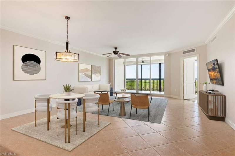 WELCOME TO ONE OF THE BEST 6TH FLOOR VIEWS OF THE ESTERO BAY..... This bright and sunny sky home offers endless panoramic Gulf & Bay views + breath-taking eastern sunrises AND western sunsets off the multiple balconies with bonus electric storm shutters. The open floor plan with desirable neutral color palette has been meticulously maintained and is awaiting its new owners to put their own signature stamp on it. The primary suite featuring a large picture window and guest suites all have access to either a screened or open terrace for unwinding and enjoying your favorite beverage. With 3 bedrooms and 3 full baths, this is a perfect home for full-time residents or those wanting to come down for the winter season. Florencia has a recently remodeled, absolutely stunning, grand main lobby; 2 guest suites to accommodate overflow; social room; theater; fitness center; resort-style pool; 2 designated parking spaces in secured garage; on-site management and a privacy officer available to greet you and your guests upon arrival. Colony residents automatically enjoy amenities including The Bay Club with both casual and elegant private dining, a 34-acre private island beach, 12 tennis courts, pickleball, bocce, sailing and kayaking. If an elite lifestyle in an amenity rich community is for you.....we invite you to view this exclusive property in the sky.