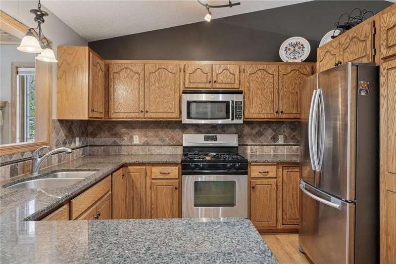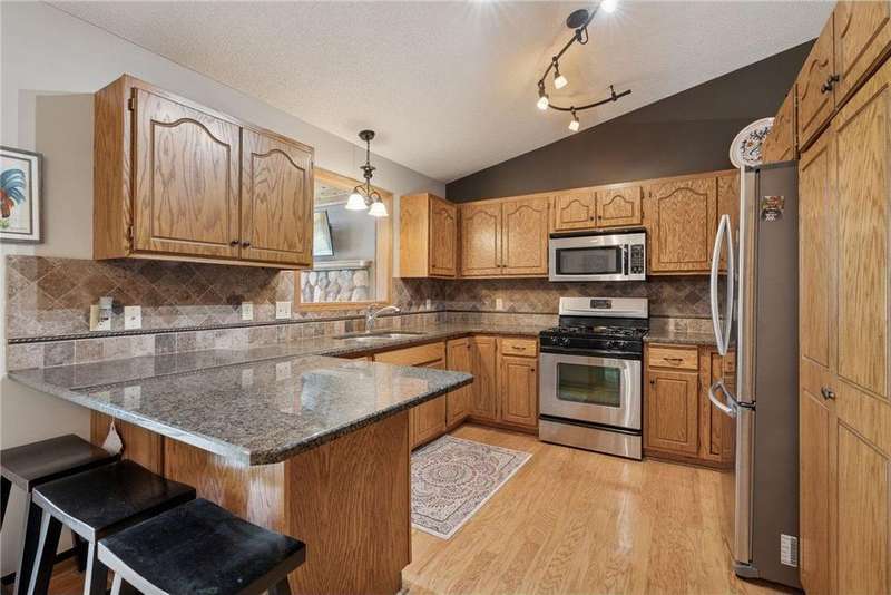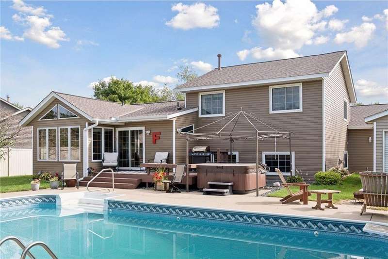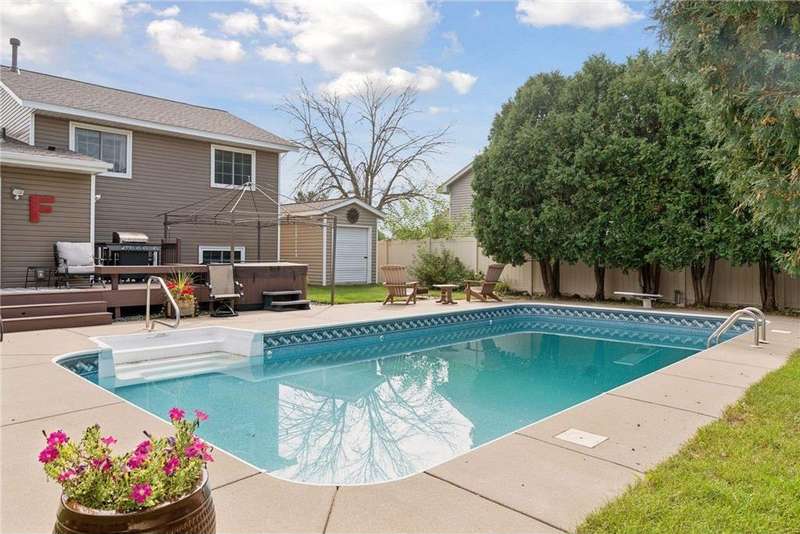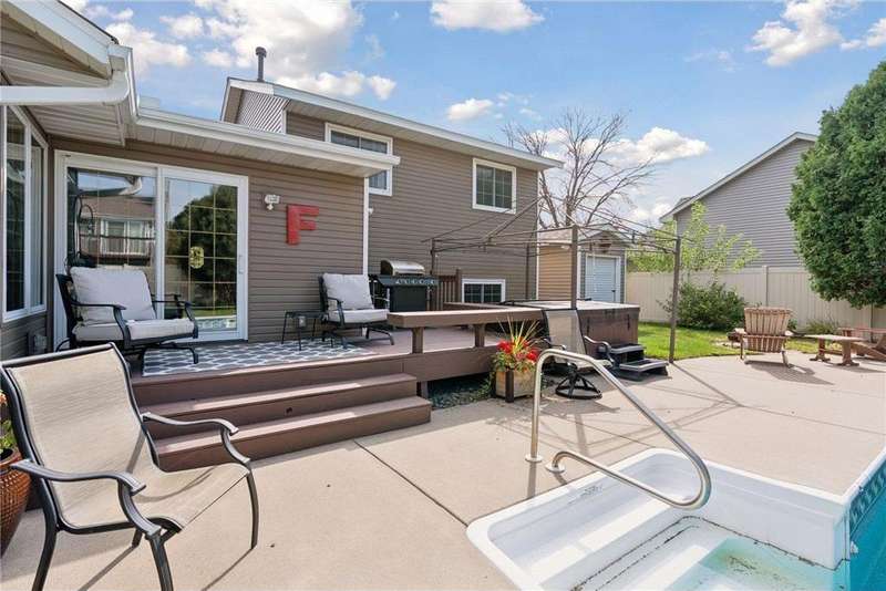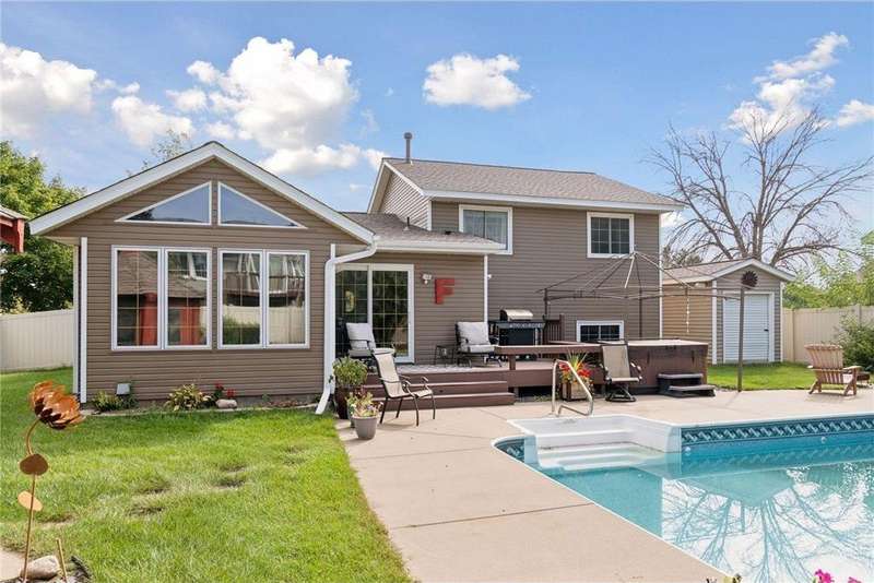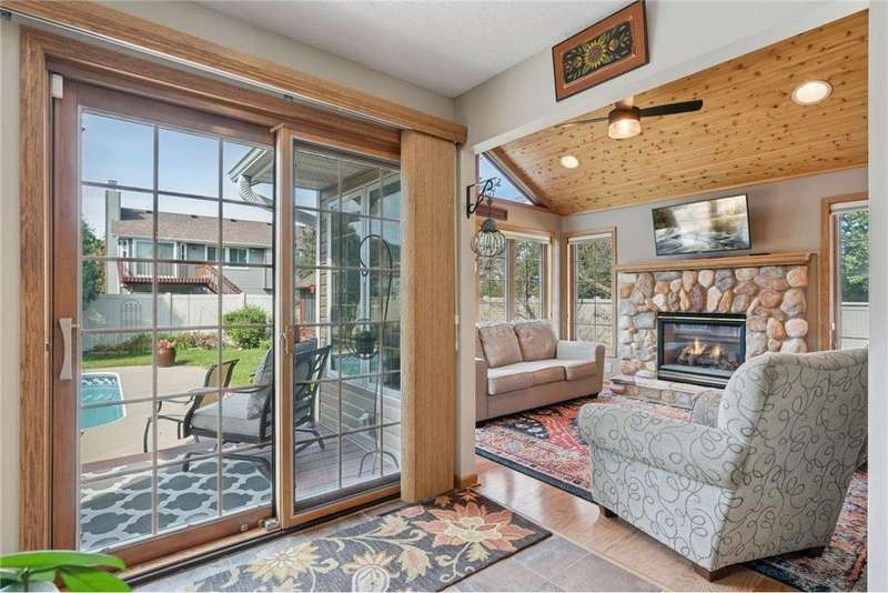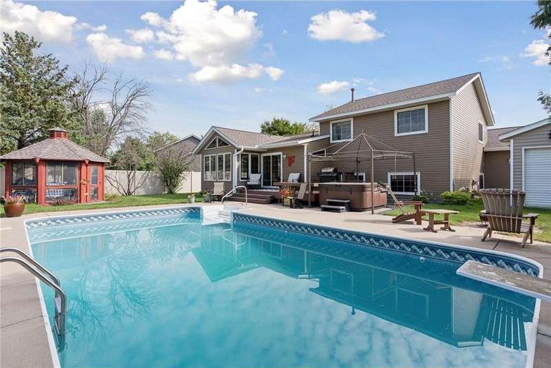 Nicely maintained and updated 4 level home with a sunroom addition. A lovely open floor plan, 3 bedrooms on upper level and 2 lower level bedrooms/flex spaces. Two gas fireplaces, vaulted main level, 3 baths and 3 car garage. Completely fenced, private backyard with in ground heated pool, gazebo, large storage shed, deck and multiple patio spaces for entertaining! Roof and siding 2 years old, privacy fence `1 year old, maintenance free. This home is move-in ready close to 610 for easy access.