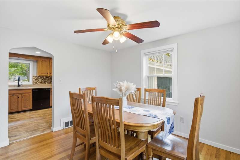 Charming move-in ready Cape in North Weymouth with fenced yard & updates! This bright and freshly painted 3-bed home offers hardwood floors in the living room, dining room, hall and all bedrooms. The kitchen features Corian countertops, recess lighting and vinyl flooring range, dishwasher, microwave, refrigerator, washer & dryer all to stay. A convenient 1st-floor half bath with ceramic tile is located off the main living area, with a full ceramic-tile bath on the 2nd floor. Enjoy outdoor living with a vinyl deck overlooking the fully fenced yard, great for pets, play or entertaining. Additional highlights include: roof replaced in 2017, forced hot air by gas, 1-car attached garage, and full basement for storage or future potential. Excellent location near public transportation, shopping, parks, schools and area beaches.All offers due by Sunday 11/2/25 at 7:00. Please make offers good until Monday at 12:00.