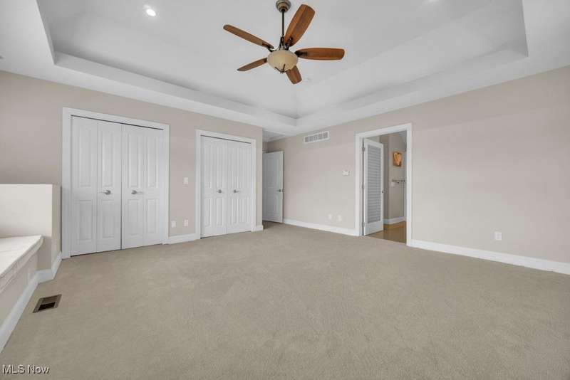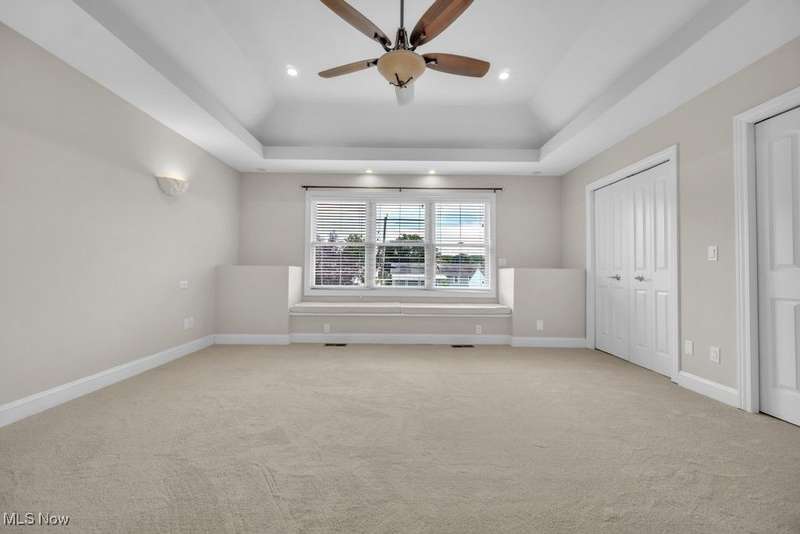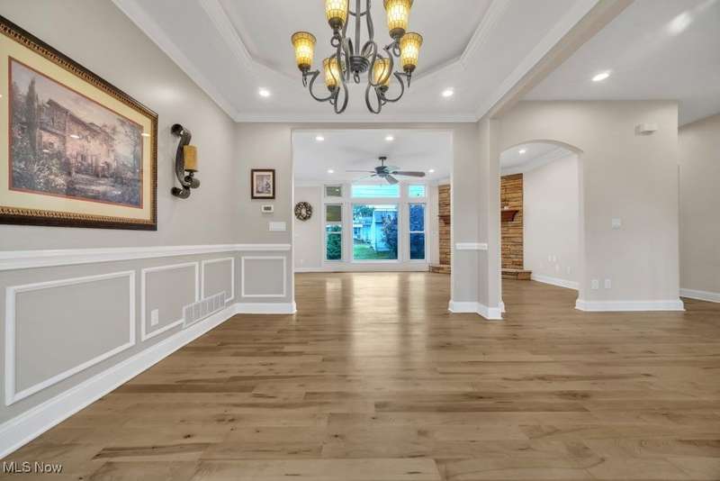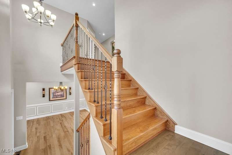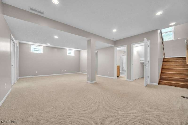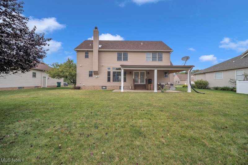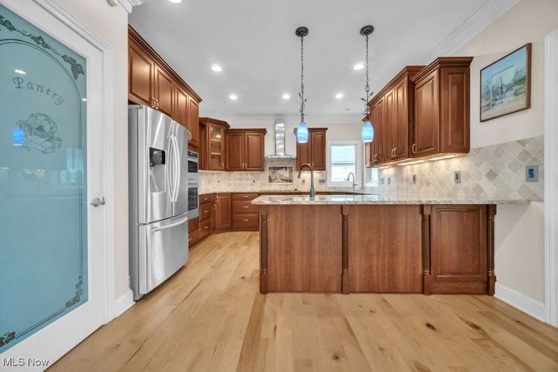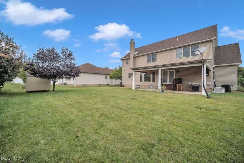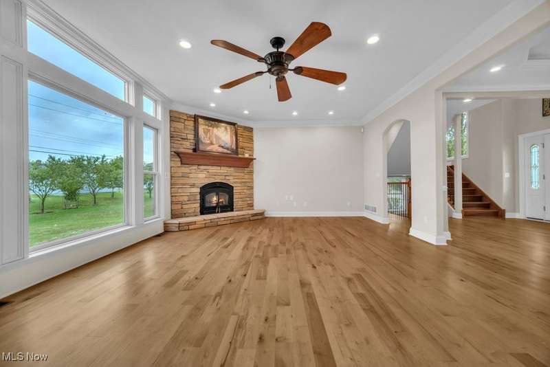 Beautiful 4-bed, 4-bath custom-built colonial with wide-plank hickory hardwood floors and an open floor plan. Living room features a high efficiency wood-burning stone fireplace. Formal dining with tray ceiling, crown molding, and detailed millwork. Kitchen includes cherry cabinets with crown molding and new stainless appliances. Upstairs features carpeted bedrooms, including a spacious primary suite with walk-in closet and double-sink bath. The finished carpeted basement offers a bonus bedroom or office and a full bath, great for guests or remote work. Enjoy outdoor living on the stamped concrete patio with pine ceiling and a large yard. Located on a quiet cul-de-sac with double-pane windows throughout.