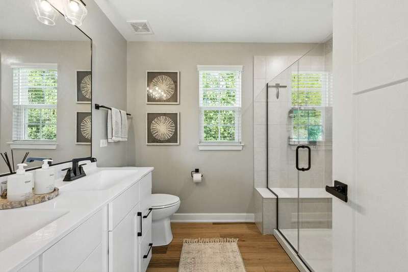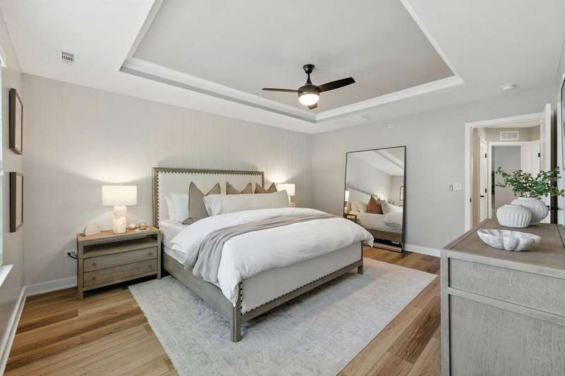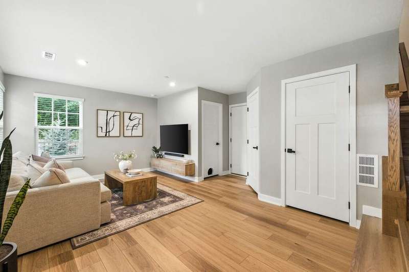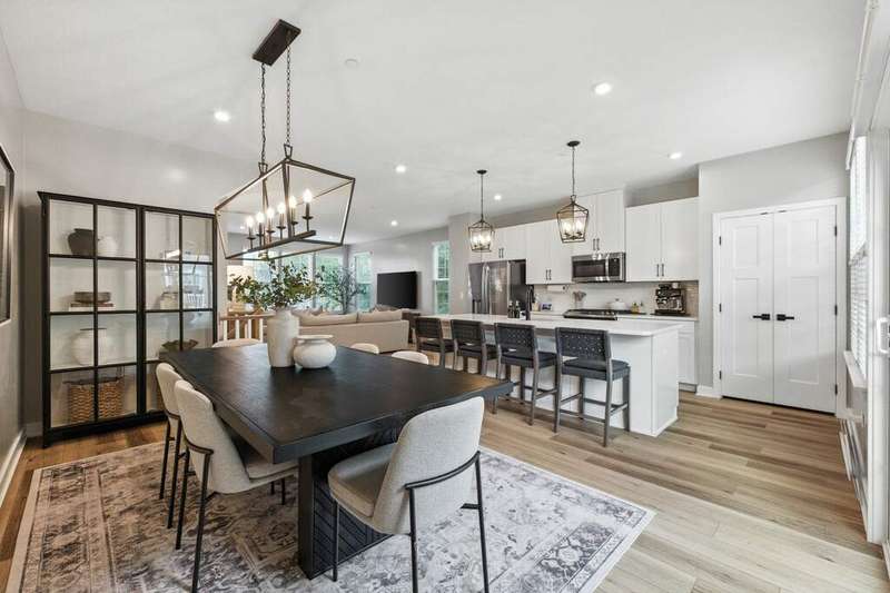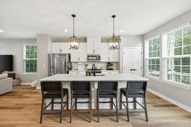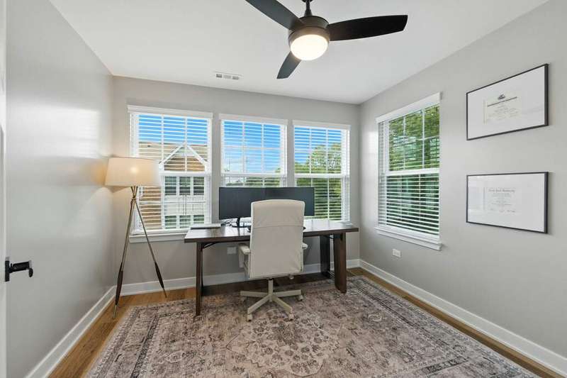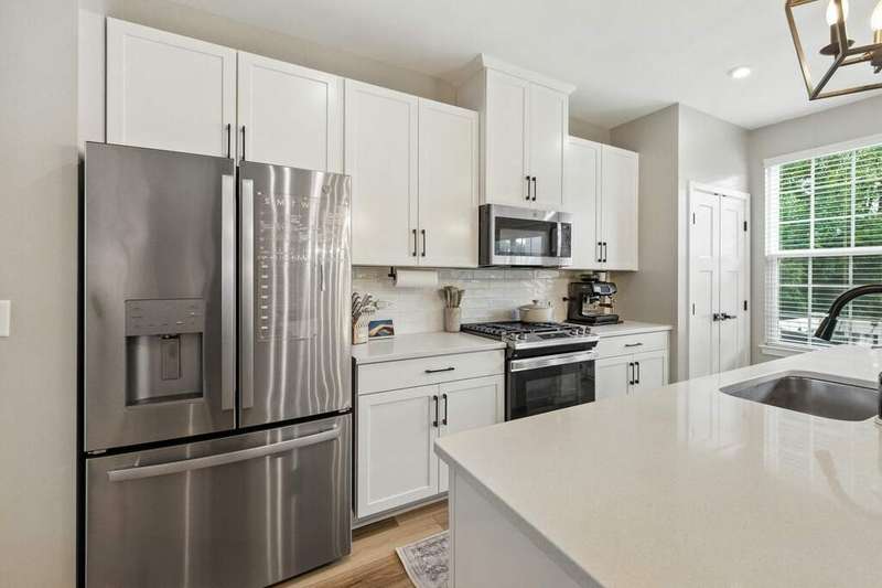 Stunning Designer End-Unit Townhome - Just Minutes from Downtown Lake Zurich. Built in 2022 and thoughtfully upgraded in 2025, this home offers a perfect blend of modern sophistication and architectural elegance. With 3 spacious bedrooms, 4 bathrooms, and a finished basement, every detail has been elevated with designer touches. Step inside to an open, bright, and airy main level where the kitchen, dining, and living areas flow seamlessly together. The gourmet kitchen features sleek quartz countertops, an oversized island with new pendant lighting, a brand-new added GE 5-burner gas range, and just upgraded cabinet hardware. A new statement designer chandelier highlights the dining area, while the living room boasts an abundance of windows and ample space for oversized furniture-ideal for entertaining. All of this is set over the just installed brand-new luxury vinyl plank flooring throughout the entire home, including custom staircase finishes. The spacious balcony on the main level also offers a space for outdoor enjoyment. Upstairs, the primary suite feels like a boutique hotel, complete with tray ceilings and new designer wallpaper accents. Relax in the en-suite spa-inspired bathroom, with a double vanity and large walk-in shower. A spacious walk-in closet completes the retreat. Two additional bedrooms with fresh updates, wallpaper accents, and walk-in closets, share a stylish updated full bath with a newly added vanity. The convenient second-floor laundry room includes new top-of-the-line Samsung washer and dryer, custom cabinetry, shelving, and chic wallpaper, all just added for a contemporary touch. The finished lower level provides flexible space for a home office, gym, or media room, plus an additional full bath-making this home as functional as it is beautiful. Freshly painted walls, ceilings, trim, and baseboards throughout the entire home make for clean lines and organic ambiance. The Oversized 2.5-car garage comes with ample storage and space. Perfectly located just minutes from Lake Zurich's downtown, including Breezewald Park, dining, shopping, fishing, swimming at the beach and the Metra train. This rare home combines luxury, convenience, and style. A home that truly defines the term move-in ready. Blending high-end designer living with the comfort of a year-round vacation retreat, this is an opportunity to accomplish all your home requirements.