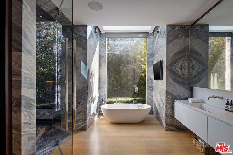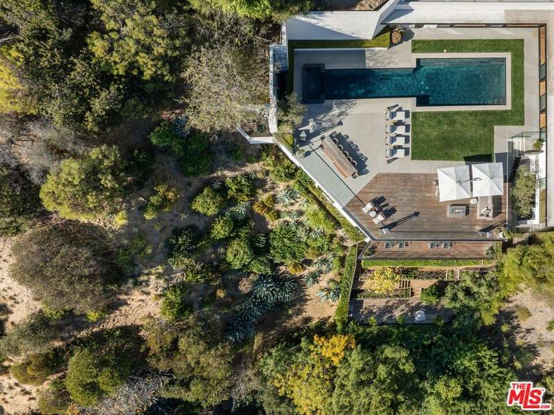 Tucked away in the prestigious Bird Streets, this private contemporary compound blends refined design with absolute privacy. Thoughtfully reimagined by the renowned AD100 firm Clements Design, the residence spans over 8,000 square feet on a generous 23,100-square-foot lot, offering a seamless indoor-outdoor lifestyle framed by sweeping city views through disappearing walls of glass.Light-filled living spaces include an airy great room with a striking fireplace and skylights that enhance the home's serene atmosphere. The chef's kitchen is equally impressive, outfitted with Miele appliances, an oversized island, WineMate-cooled wine wall, and a full butler's pantry.The primary suite is a calming retreat with a fireplace, motorized shades, direct access to the yard, and a spa-inspired bath featuring a soaking tub, glass-enclosed steam shower, and a custom walk-in closet. Designed for entertaining, the outdoor areas include an 80-foot pool with a dramatic marble waterfall, spa, multiple lawns, and a tiered deck with a thriving vegetable garden by Heart Beet Gardening. The lower level features a private guest suite, gym with separate entry, home office, and a state-of-the-art theater with lounge and bar. Additional highlights include a library with floating walnut shelves, secondary lounge with built-in bar, Crestron smart home system, and a resurfaced garage. Moments from the Sunset Strip and Beverly Hills, this one-of-a-kind estate offers the ultimate blend of luxury, privacy, and access to the best of Los Angeles.