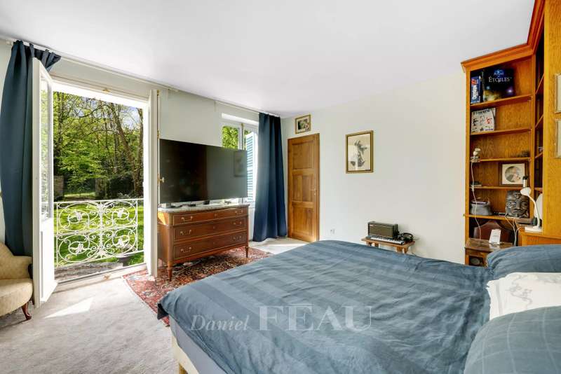Once the residence of one of Louis XIV’s intendants, this superb mid 18th century former hunting lodge is located near château de Voisin and a short distance from château de la du Barry. Subsequently the Prefet de Paris’s country residence in the early 20th century, the property was also for a time the residence of the Dutch Ambassador, which explains the multitude of beautiful tulips which blossom in Spring. Set in 1500 sqm of walled grounds, the ensemble includes a 290 sqm main house, an annex with further accommodation and a large double garage. The main house includes a near 40 sqm living/reception room and library with a fireplace, a kitchen with an adjacent pantry and wine cellar, and a dining room. All rooms open onto a sunny terrace. Upstairs are six bedrooms and four bath or shower rooms. With a 30 sqm studio apartment. The property benefits from easy rail and road access from the capital, and is near excellent schools.