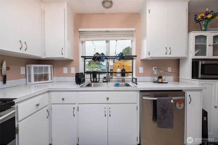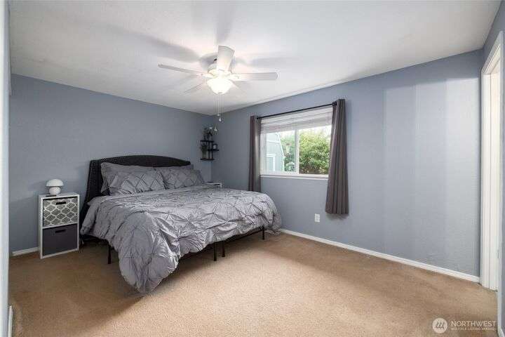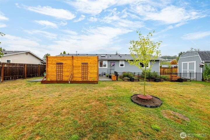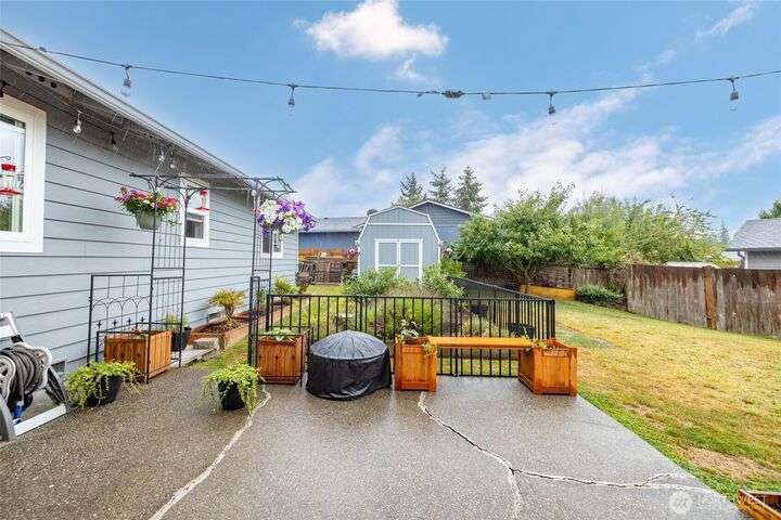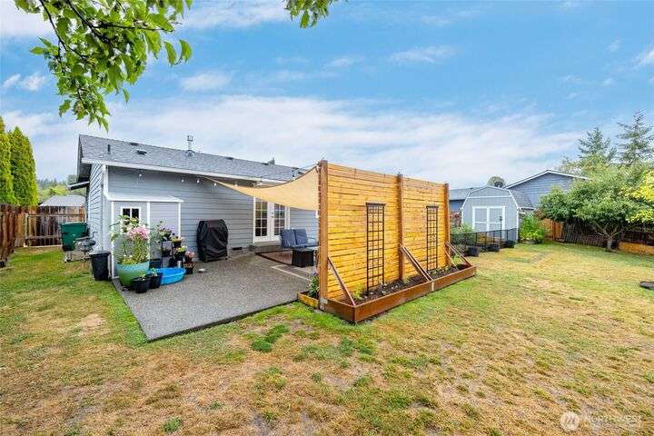 This home has it all! Great pride of ownership is reflected in this beautifully maintained home. New roof installed in 2014, new 40 gallon hot water tank was installed in 2018. 2020 the home got new windows, a new furnace w/ an in line air scrubber and the crawl space was resealed and new vapor barrier installed. 2022 a new tub and shower installed by bath fitters. The backyard is alive with humming birds drawn in by the abundant shrubs and flowers .Plum tree, blueberry bushes, raspberries and new bed of strawberries are just a few of the garden goodies planted by the owner. The backyard is perfect for relaxing with a privacy wall covered by a custom shade sail. There is also a 10x10 barn shed w/loft. EV charging in garage (220 outlet)
