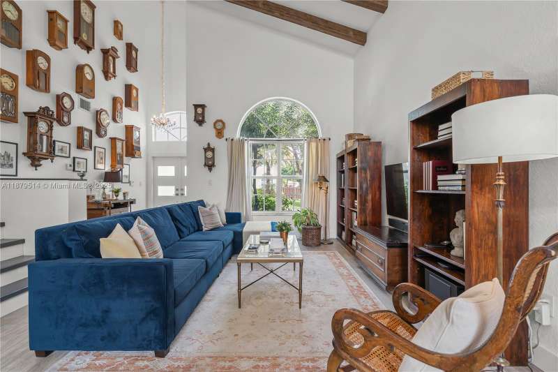 Welcome to this beautiful residence that boasts plenty of natural light, high ceilings with decorative beams, and a completely remodeled kitchen and bathrooms. The principal suite features a large closet and a bathroom equipped with all the modern featuresDownstairs, you will find a combined kitchen and family room that overlooks the backyard with a covered terrace perfect for entertaining. All impact windows and doors, along with two-zone A/C units installed in 2019 and 2023. Situated on a corner lot, this home includes a two-car garage and a spacious driveway, with guest parking just around the corner. Enjoy the resort-style clubhouse, with three swimming pools, a café, a jacuzzi, a fully-equipped exercise room, a party room, a fishing pier, a children's pool, and much more.