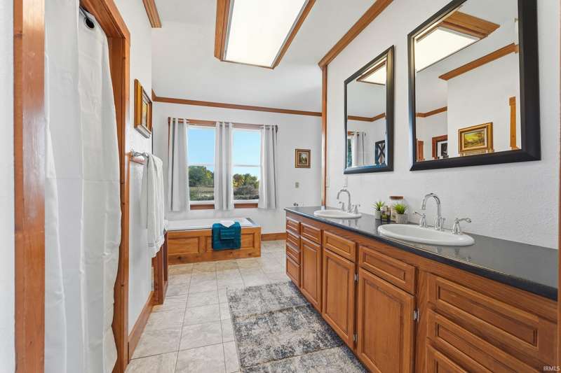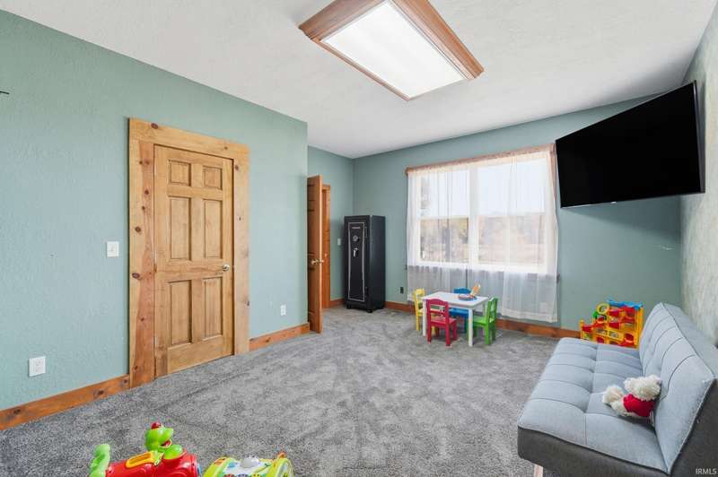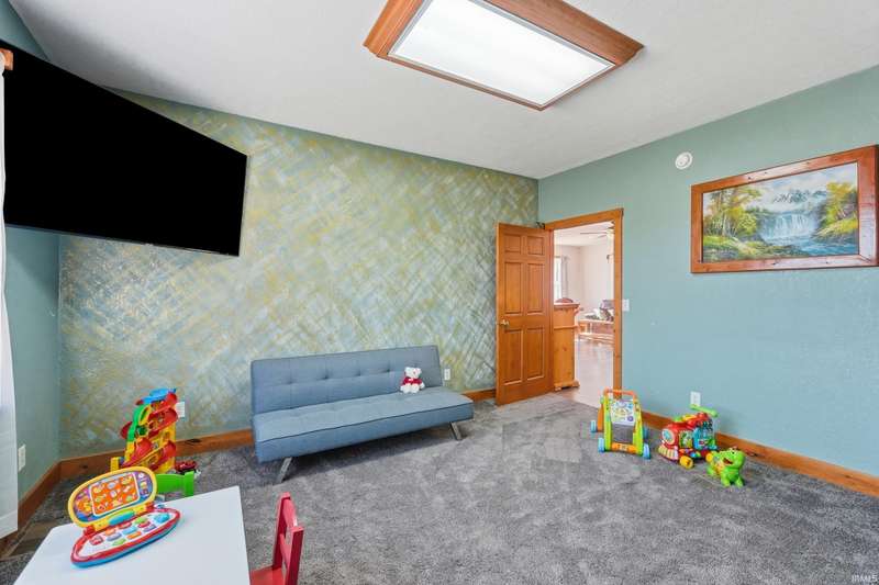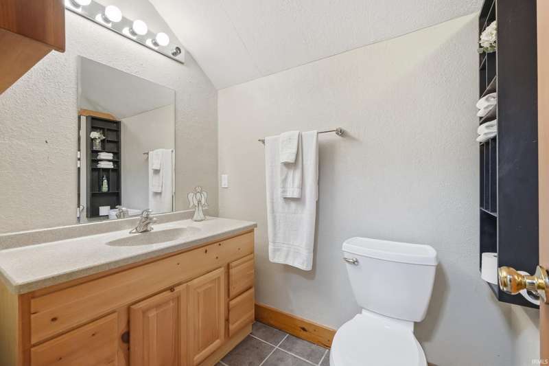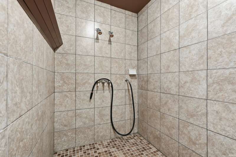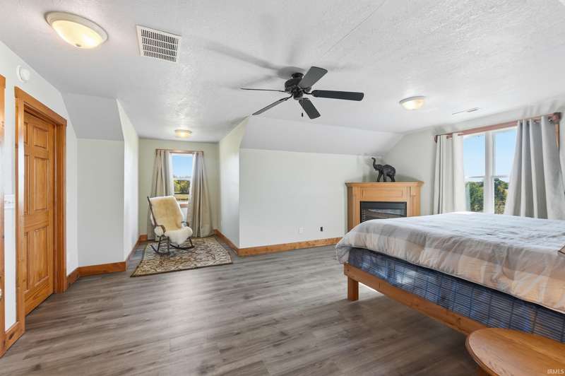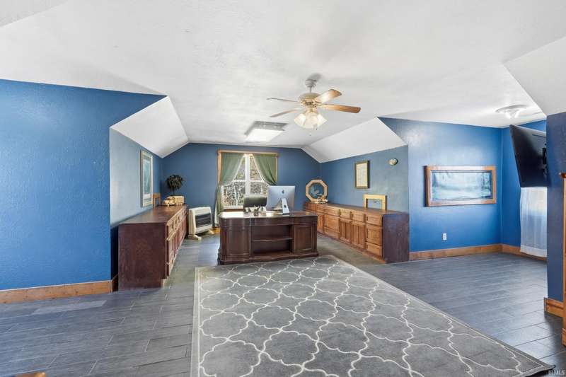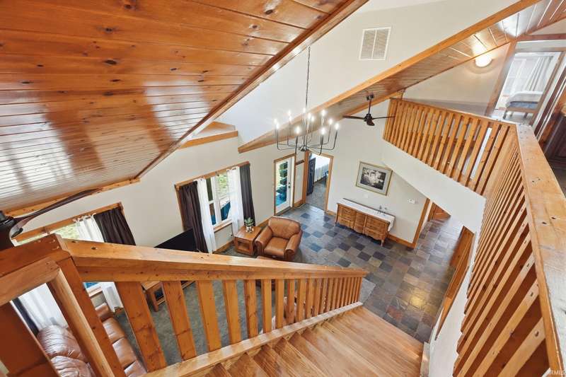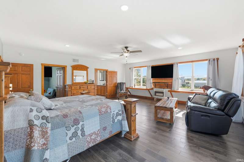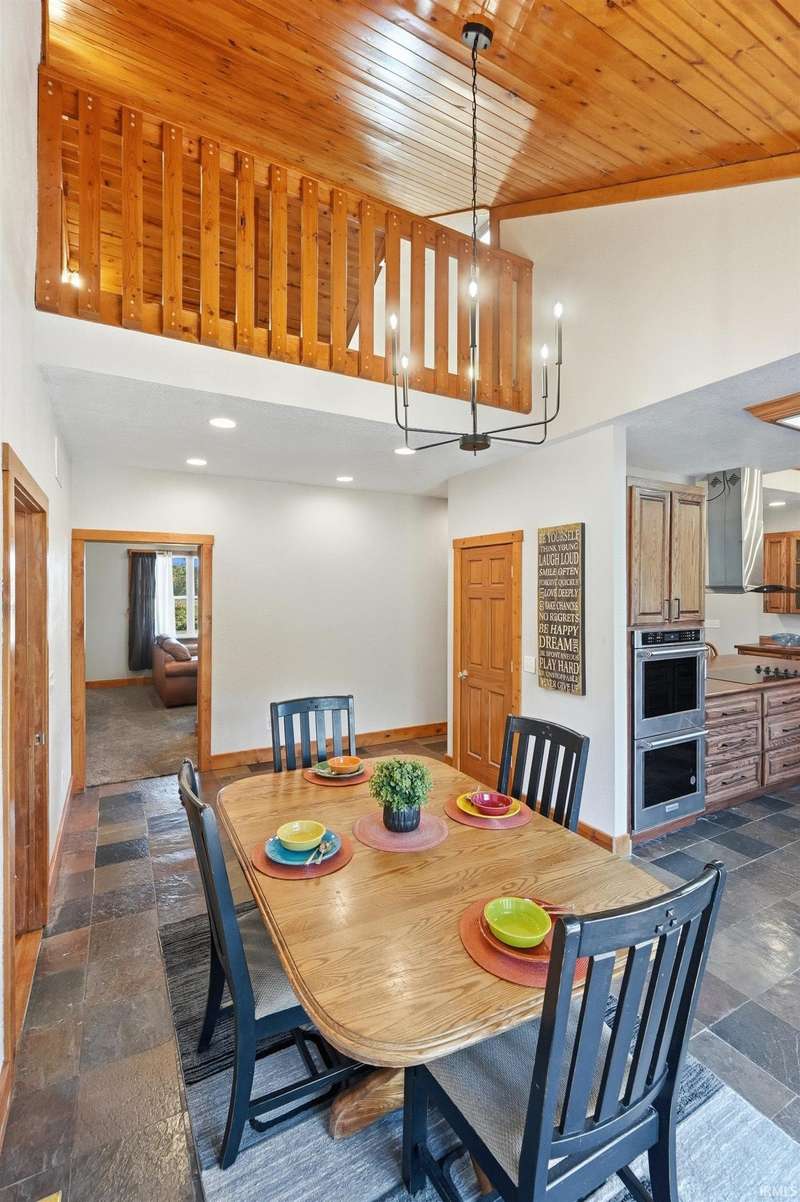 As you drive up the private lane, this beautiful stick-built log home immediately stands out for its craftsmanship and peaceful wooded setting. Nestled on nearly two acres in the rural Roanoke area, this property offers access to Timber Lake Campground for fishing, boating, and year-round recreation. A wide covered front porch welcomes you inside, where natural woodwork, vaulted ceilings, and an open-loft great room create a warm, inviting feel. The main level features a spacious master suite with a custom tile shower featuring dual shower heads along with direct deck access. Just off the master is a flexible office space or additional bedroom. The open-concept kitchen includes brand-new Amish-built cabinetry, solid wood countertops, a cooktop with double ovens, walk-in pantry, and a bright breakfast nook. A laundry room and mudroom conveniently connect the kitchen to the oversized three-car garage. Upstairs are two oversized bedrooms, a full bath, a secondary mini kitchen, and access to the upper deck. The finished basement adds even more living space with two potential bedrooms or a family room and a full bath. Step outside to enjoy nearly 1,600 square feet of outdoor living area, including a 90×16 main deck surrounded by nature. A 21×16 shed offers excellent storage. Built with efficiency in mind, this home features six-inch insulated walls, a closed-loop geothermal heating and cooling system, dual hot-water heaters, and a Manabloc plumbing system. Located about 12 miles from the GM Truck Plant and Vera Bradley, this peaceful retreat blends privacy, quality, and convenience in one property.