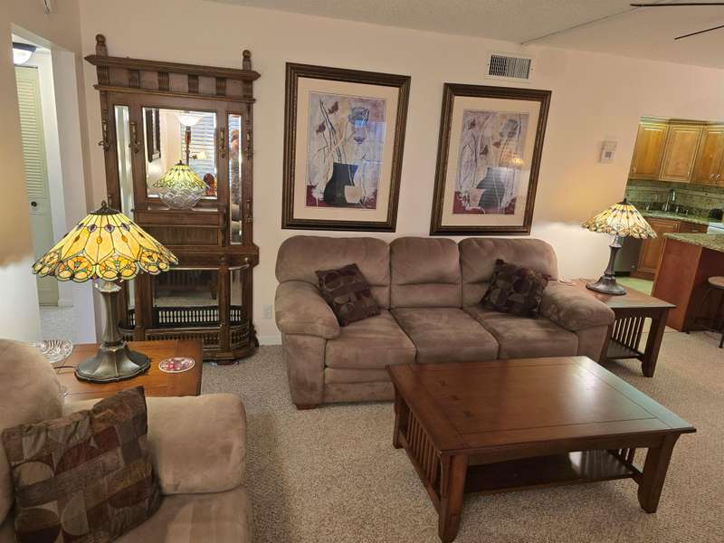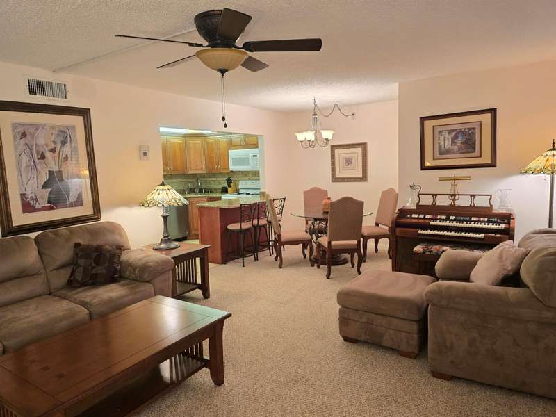 Lovely 1st floor condo, beautifully decorated and furnished. Granite kitchen with bar and wood cabinetry, Bedrooms have walk in closets with plenty of room for your personal items. Community has clubhouse and pool and much more. Close to shopping entertainment beaches and more See it today! Seasonal Rental !
