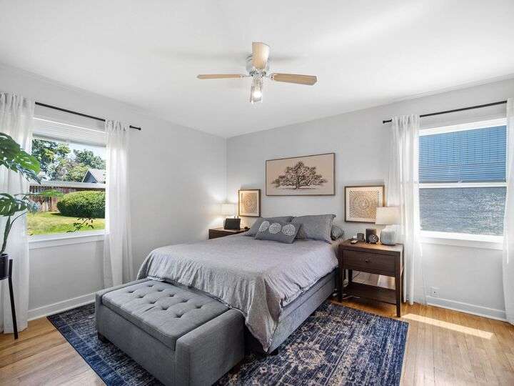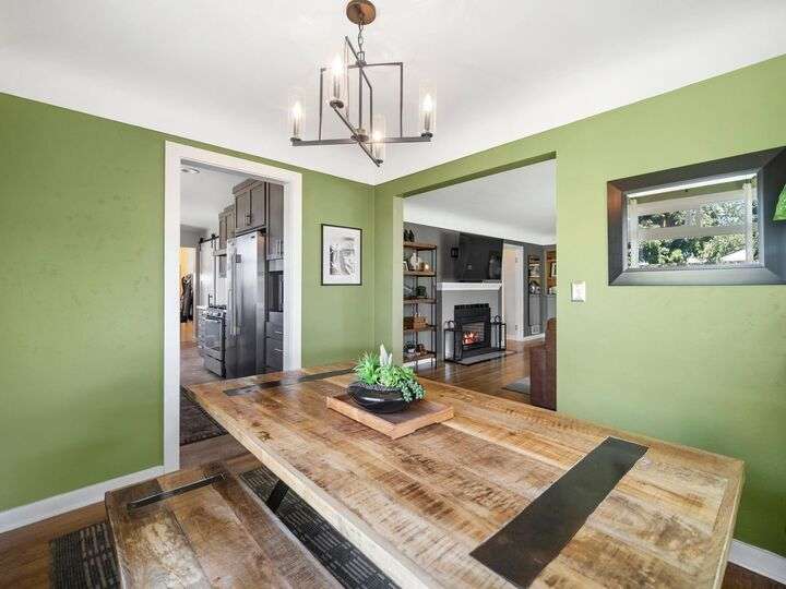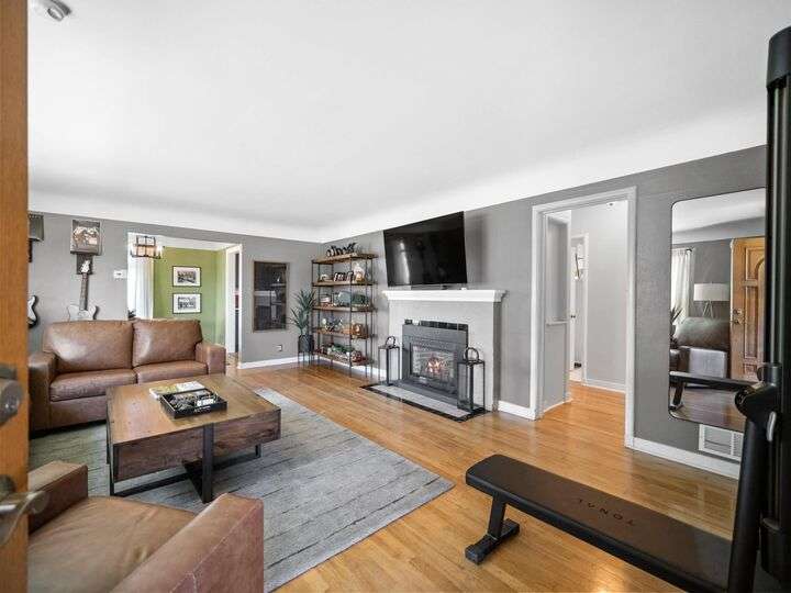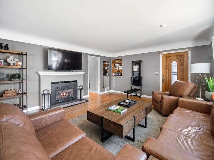 Charming Rancher with Sunset Views on a Corner Lot Welcome to this beautifully updated 3-bedroom, 1 ¾-bath ranch-style home, perfectly situated on a spacious corner lot. Enjoy stunning sunset views from the inviting front porch — the perfect spot to unwind at the end of the day. Step inside to find gleaming hardwood floors throughout and a thoughtfully updated kitchen with modern finishes, ideal for both everyday living and entertaining. Great gas fireplace in the formal living room. The lower level has a cozy family room featuring a stylish dry bar, and wood burning fireplace creating a warm and welcoming space for gatherings. Bedroom is non egress and has a 3/4 bath, tile shower. Out back, you'll find a fully fenced yard — perfect for pets, play, or gardening — along with a detached 2-car garage offering ample storage and workspace. This home combines comfort, convenience, and character in one ideal package. Don’t miss the opportunity to make it yours!