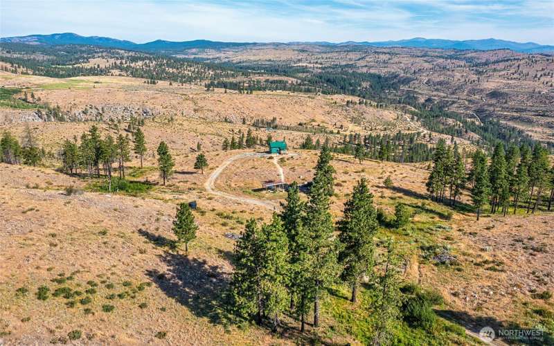 Bordering State land, at the end of quiet Harmony Heights Rd, this 20-acre property offers sweeping mountain and valley views and unmatched privacy. The cozy 500+ sqft cabin features a loft, wood stove, full kitchen, 3/4 bathroom, and a living room designed to capture stunning vistas. Cabin and all systems —septic, well, electrical (400 amp)—are fully permitted and county approved. 2500 gallon holding tank for irrigating garden or future landscaping. An RV hookup adds flexibility for guests or extended stays. A perfect base camp for year-round recreation in every direction, this rare offering provides serenity, access, and adventure all in one.