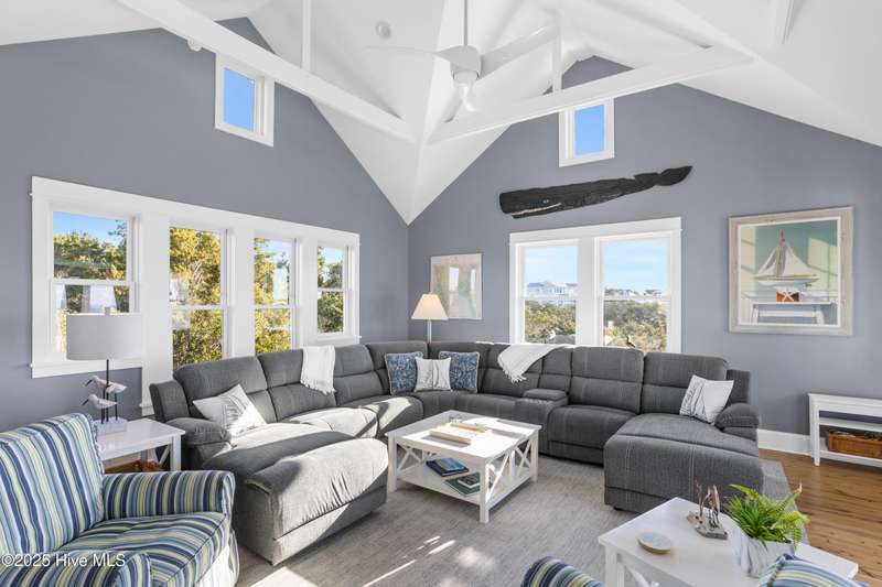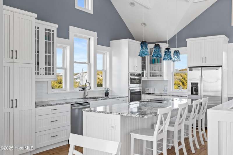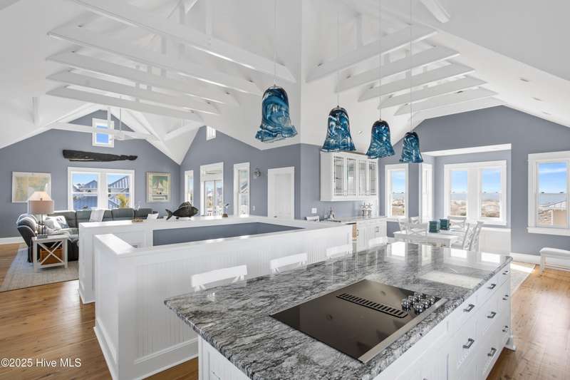 DOWN TO THE STUDS NEWLY RENOVATED new roof, new windows, new siding... 5BR/4.5BA Oceanview Home w/ a Lifestyle BHI Membership available for separate purchase. Designed by Peter Quinn, built by Andy Kennedy, whole-house renovation by Solstice Builders 2024. Ipe decking, standing seam metal roof, & hurricane rated dual-pane Smart Sun impact resistant windows w/ argon. Flooring throughout is Australian Cypress & tiled bathrooms & laundry area. Featuring a bright & airy living space w/ vaulted ceilings, abundant natural light, & serene ocean-inspired decor. The open-concept living room is adorned w/ stylish furnishings, including a plush sectional sofa, charming nautical accents, & panoramic windows that showcase breathtaking views of the surrounding landscape. Stunning coastal kitchen w/ elegant finishes & abundant natural light. Kitchen boasts crisp white custom cabinetry w/ shaker-style doors & under-cabinet lighting, granite countertops, & sleek stainless-steel appliances. A spacious center island w/ bar seating provides the perfect place for casual dining & entertaining. The eye-catching blue pendant lighting adds a charming coastal touch, complementing the soft gray & white color palette. Large windows frame serene views, infusing the space with warmth & tranquility. This kitchen is ideal for those who love to cook & entertain in a stylish yet functional space. Wake up to breathtaking ocean views in this stunning beachside retreat. Perfectly nestled along the shoreline, this charming coastal home offers a serene escape w/ direct beach access & picturesque sunsets over the water. Featuring a spacious, light-filled interior, modern coastal architecture, & multiple outdoor living spaces, this home is designed for both relaxation & entertaining. Whether lounging w/ a book or entertaining guests, this home offers the perfect balance of comfort & sophistication. 2 golf carts convey w/ sale of home. Fully furnished w/ very few exclusions.