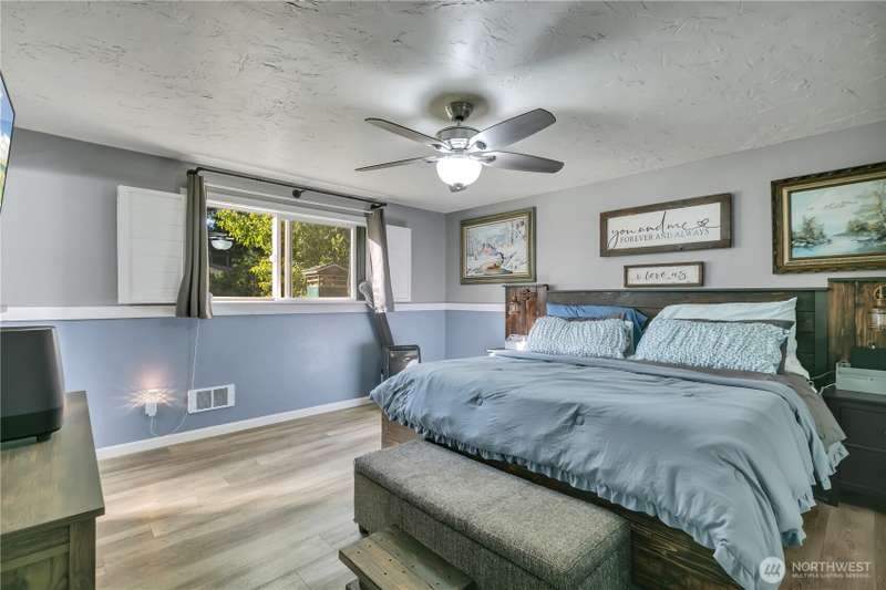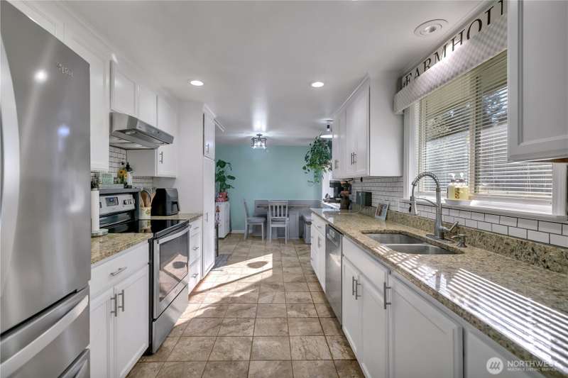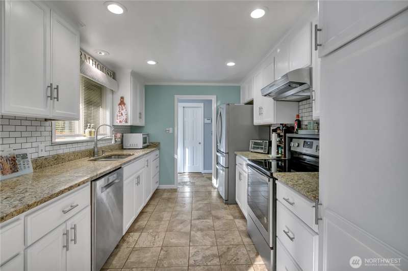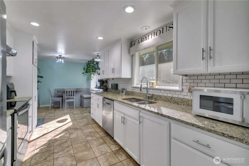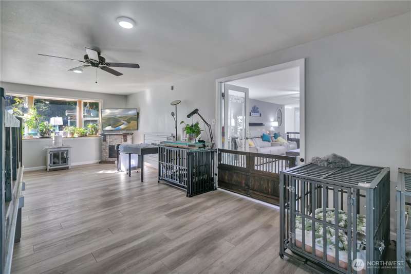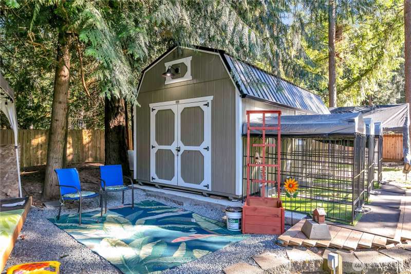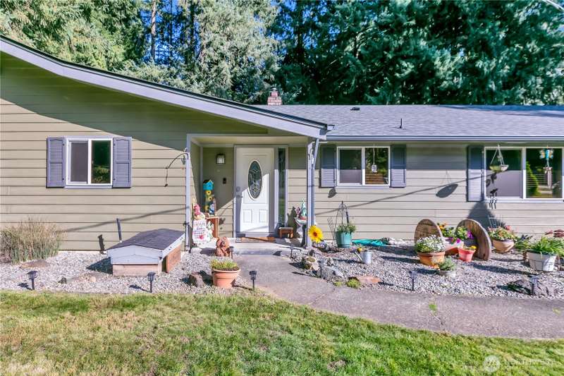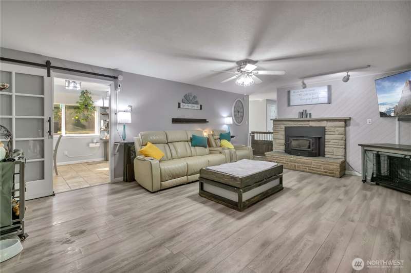 Welcome to this charming rambler, perfectly situated on 3/4 of acre. This move-in ready home features a spacious living room with a cozy wood-burning fireplace, and a stylish kitchen equipped with granite countertops and SS appliances. The primary bedroom boasts a private three-quarter bath, 2nd bedroom comes with a convenient Murphy bed. Enjoy the ambiance of two electric fireplaces! a chic laundry room with hard surface floors throughout the home. 2 sliders lead you to a massive covered back deck, ideal for entertaining. There’s a three-car garage, multiple outbuildings, a woodshed, and a generator for added peace of mind. The property is fully fenced and features a sprinkler system in both the front and back. 2 door 3 car shop 780sqft