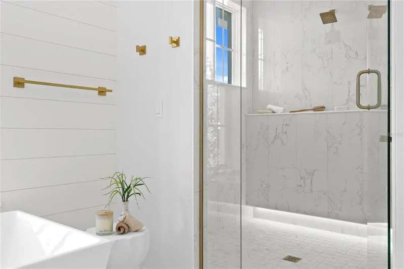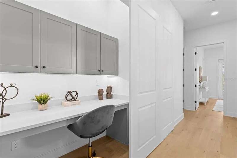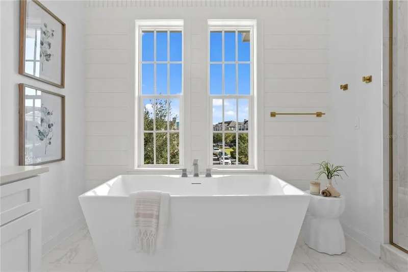 Under Construction. Welcome to 450 Gilman Pl N, St. Petersburg, FL 33716 — a stunning, thoughtfully designed two-story residence that seamlessly blends modern elegance with everyday functionality. This exceptional home features 3 generously sized bedrooms, each with its own private en-suite bathroom and dedicated closet, offering the perfect balance of comfort and privacy for family and guests alike. From the moment you step inside, you’re greeted by oak engineered hardwood floors that run throughout the home, adding warmth and sophistication, while beautifully tiled bathrooms elevate the overall design. The main level boasts a spacious open-concept layout, where the living room flows effortlessly into the dining area and gourmet kitchen — a true showpiece with quartz countertops, a large center island ideal for entertaining, high-end cabinetry, a walk-in pantry, and recessed lighting that brings a subtle modern glow. Upstairs, the thoughtful layout continues to impress with a full-size laundry room and an oversized primary suite featuring a spa-like bathroom with dual vanities, a luxurious soaking tub, a large walk-in shower, and elegant tilework throughout. The suite also includes a massive walk-in closet and a tranquil, well-proportioned bedroom space. Designed for indoor-outdoor living, the home offers three covered outdoor spaces, including a spacious rear covered deck perfect for al fresco dining, morning coffee, or hosting gatherings. Additional amenities include a convenient main-level powder room, a welcoming foyer, a large two-car garage, and a two-car driveway for extra parking. Located just steps from the private community clubhouse, pool, and fitness center, this home also offers exceptional access to the best of Carillon. Enjoy miles of scenic trails, the Carillon Park lakeside boardwalk, peaceful ponds, and walkable access to convenience and dining. The community sits within a thriving business corridor featuring Publix at Carillon Town Center, Courtside Grille, Slice of the Burg, and additional retail and services. Its central location provides easy access to I-275, offering seamless connectivity to downtown St. Petersburg, Tampa, both airports, local parks, and the beautiful Gulf Coast beaches. With its premium finishes, thoughtful layout, and unbeatable location, 450 Gilman Pl N presents a rare opportunity to own a home that perfectly balances luxury, comfort, and true liveability.
