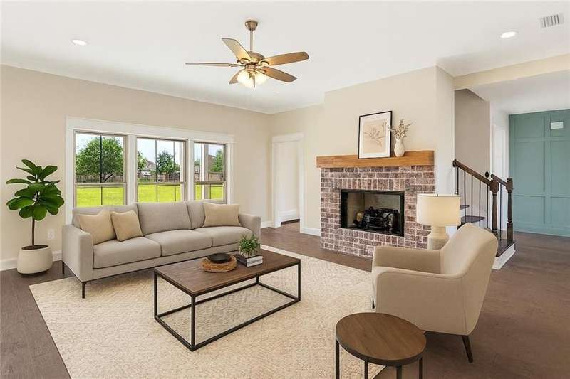 New and Ready! Welcome to the Rosewood plan, a beautifully crafted home by Tower Homes designed for comfort, convenience, and style. Located in Austin Park, this stunning two-story floor plan features 4 spacious bedrooms and 3.5 bathrooms. As you step through the covered front porch, you're greeted by a welcoming entryway that flows seamlessly into the open-concept living area, complete with a cozy gas fireplace. The dining area is adjacent to the living area and kitchen, providing an inviting space for gatherings and everyday meals. The chef's kitchen is a true highlight, boasting a large pantry, a central island, quartz countertops, and stainless steel appliances, including a gas range, range hood, dishwasher, and built-in microwave. The first-floor primary suite serves as a private retreat, featuring a walk-in closet, a private water closet, a luxurious walk-in shower, and a large soaking tub. A half bath, laundry room, and convenient drop area provide direct access to the two-car garage, completing the main level. Outside, you can enjoy a large corner lot from the oversized covered porch, accessible from the dining and living areas. Upstairs, you'll find 3 additional bedrooms, each with ample closet space. Bedroom 2 is a true suite, including an ensuite full bath and a walk-in closet. With stylishly designed finishes and well-planned storage solutions, this plan offers the perfect blend of functionality and charm. The established subdivision includes a neighborhood pool, playground, pond, and tennis/racketball courts. Gold Fortified, this home includes a one-year builder warranty, a ten-year structural PWSC warranty, and a one-year renewable repair/replacement termite bond with Formosan coverage. One or more principals of the selling entity are licensed real estate agents in the State of Alabama. Floor plans are for example only. Some rooms are virtually staged. Buyer to verify all information during due diligence.