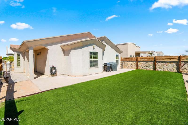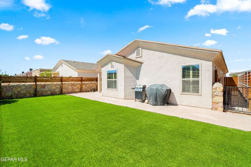 Welcome to your new home! This charming and easy-living property is perfect for anyone looking for comfort without the hassle. The front and back yards feature low-maintenance landscaping, including beautiful green artificial grass in the backyard-great for play, relaxing, or entertaining, without the upkeep. Enjoy privacy with fenced-in sides and no neighbors peeking in, plus you're just a short walk away from a large park with a playground-ideal for morning strolls or weekend fun. Inside, the home features stylish wood shutters, sleek granite countertops, and no carpet anywhere-which means no vacuuming and less cleaning! It's a smart, simple layout with everything you need. The neighborhood is on the rise, too, with new development in the area, including a brand-new Chevron gas station nearby for added convenience. This is the kind of place that feels just right-easy to care for, close to what matters, and ready to move in and enjoy