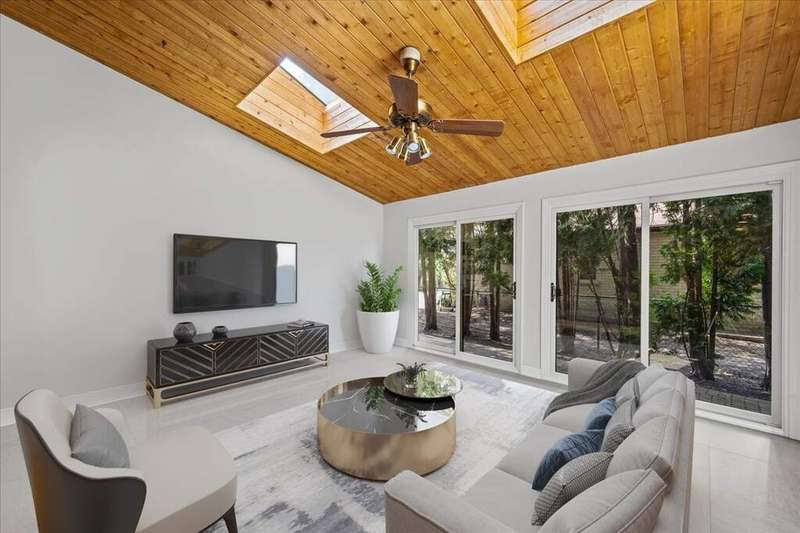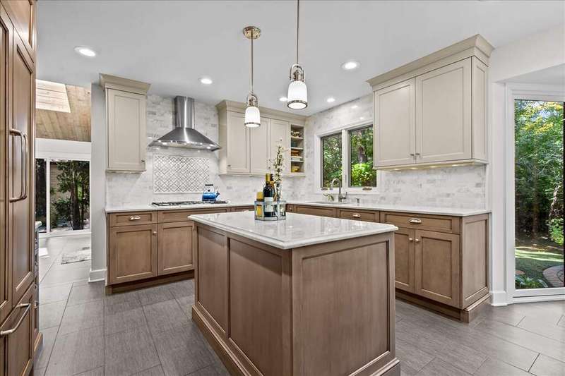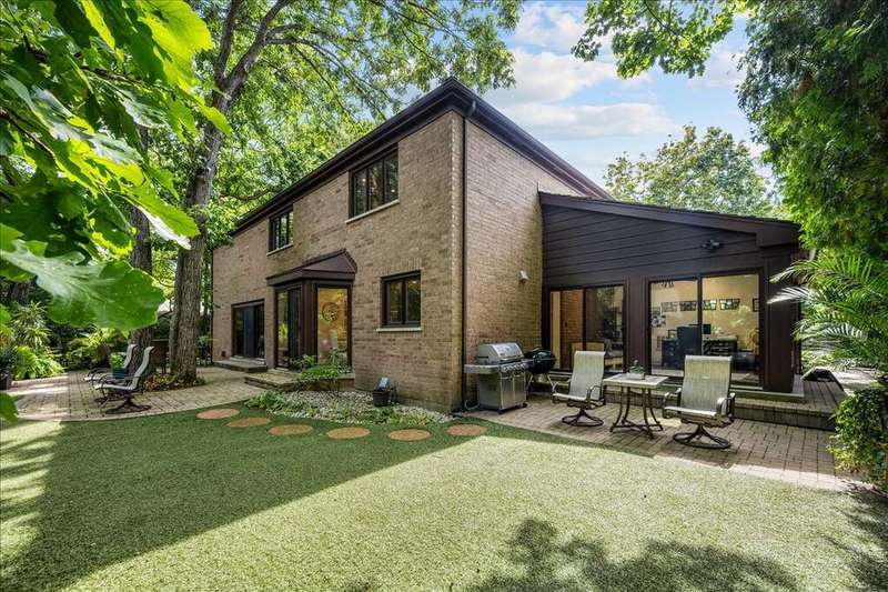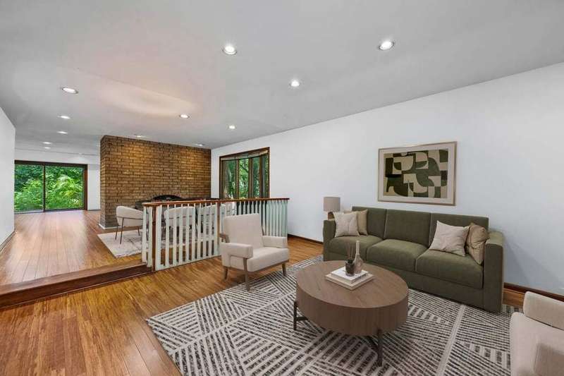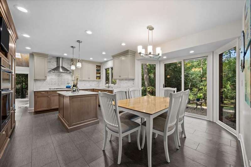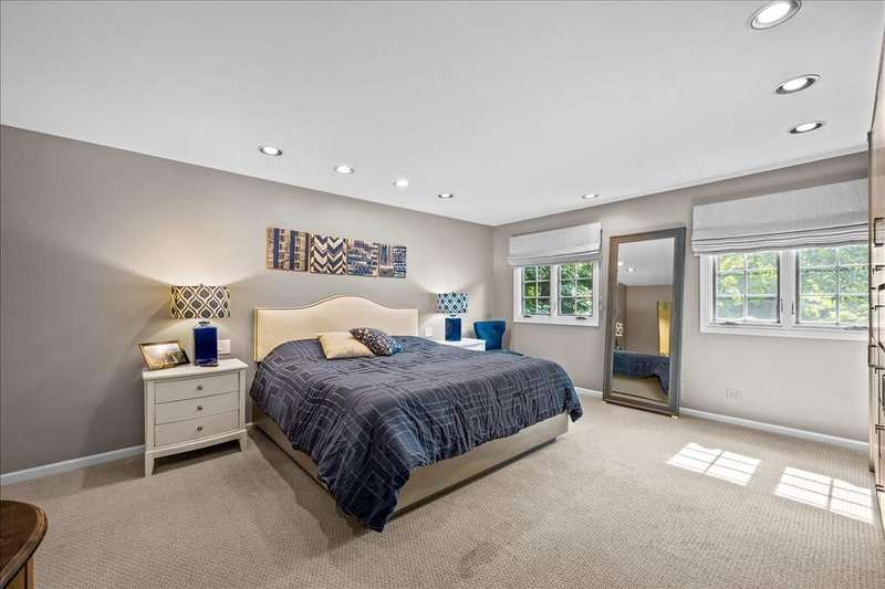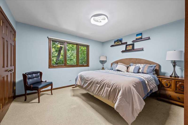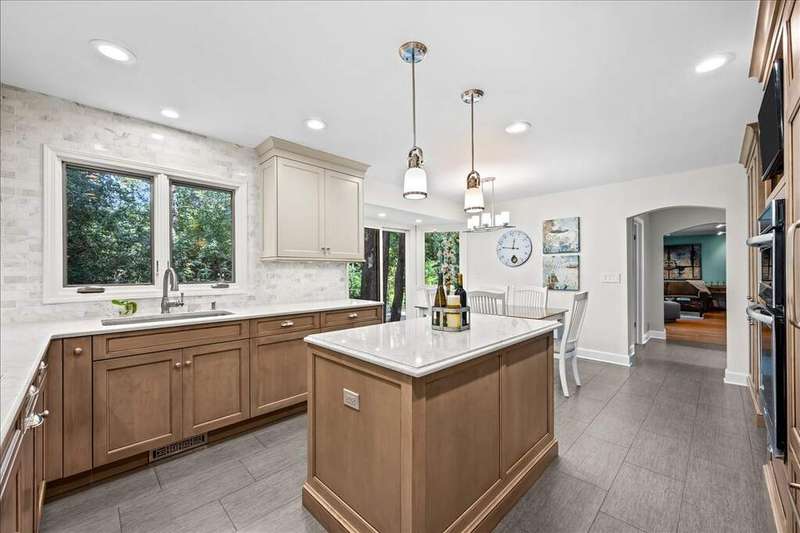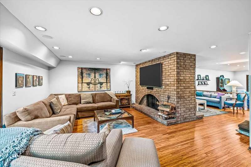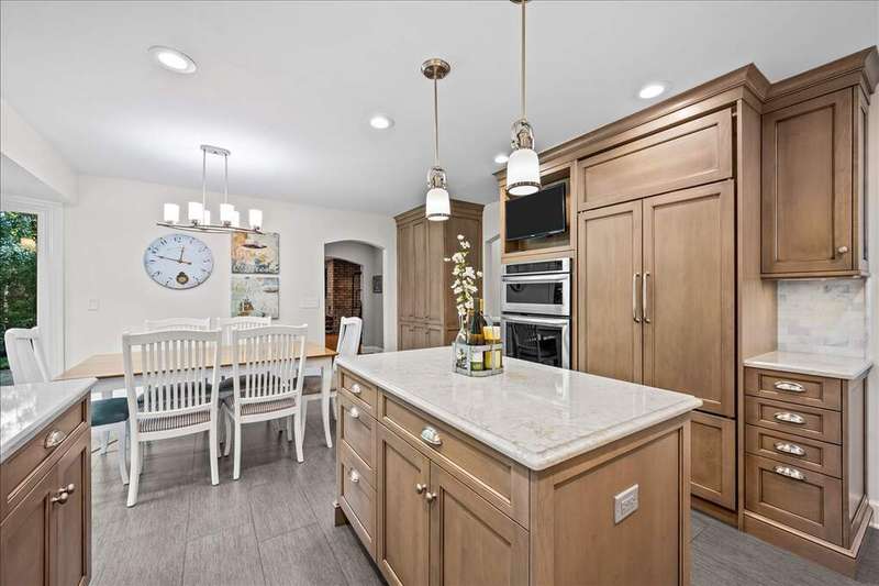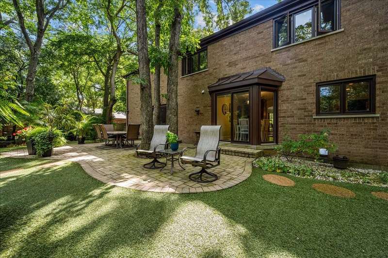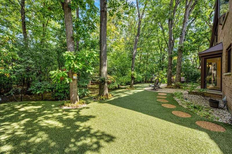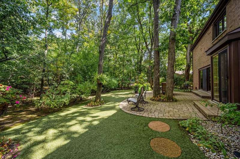Move-in ready 5 bedroom, 3 1/2 bath home set on a half-acre lot in a desirable Highland Park neighborhood. The first floor features a sun-filled, dramatic two-story foyer that leads to a large living room and a cozy sitting area with a double-sided fireplace that opens into the spacious family room. The family room, with sliding doors that lead to a brick paver patio and yard, flows into the updated kitchen, which offers custom wood cabinetry, porcelain tile flooring, quartz counters, Carrera marble subway tile backsplash, an island, high-end stainless steel appliances, and a generous eat-in area with access to the patio. A sunroom with a vaulted wood-paneled ceiling, skylights, and four sets of sliders provides additional access to outdoor space. A formal powder room with a custom tile accent wall and designer wallpaper adds a stylish touch. The mudroom with custom built-ins and laundry opens directly to the two-car garage. Upstairs, the private primary suite features a wall of built-ins and a private bath with dual vanities, a whirlpool tub, a separate shower, and two organized walk-in closets. Three additional well-sized bedrooms share a hall bath. The lower level includes a huge recreation room, a fifth bedroom, a bonus room, a full bath, and ample storage. The fully fenced, wooded backyard with maintenance-free turf and an expansive brick paver patio is the perfect space for outdoor entertaining. Above Grade Total Sq Ft: 3,511, Below Grade Total Sq Ft: 1,792, Approx. Total Finished Sq Ft: 5,303 Sq Ft plus 572 Sq Ft 2-car garage. 2024 taxes: $25,054 with Homeowner and Senior Exemptions.