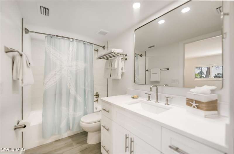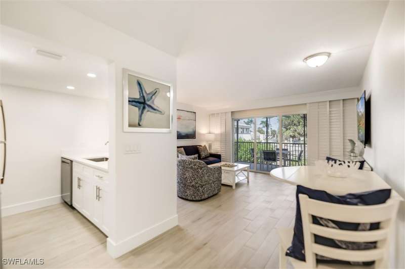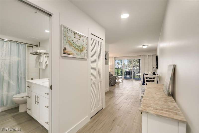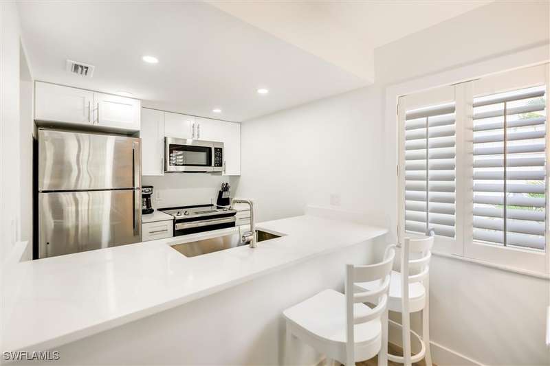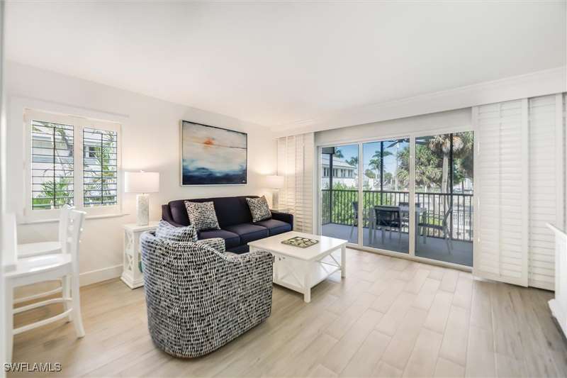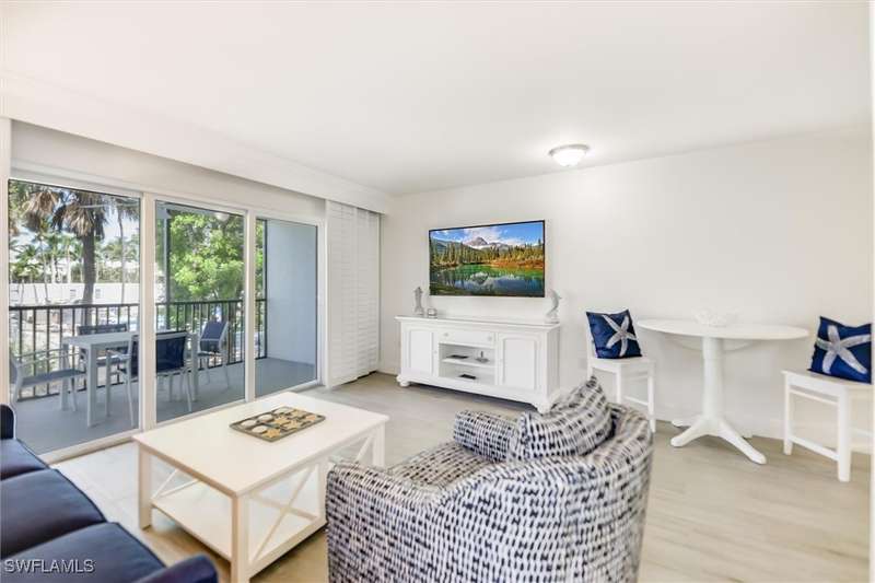 Welcome to 3119 Tennis Villas at South Seas Resort on Captiva Island! This lovely one bedroom, one bath has been completely renovated in a coastal inspired island theme which combines a relaxed, breezy feel of a beach condo with the beautiful colors and natural materials of a tropical island. This is a unique opportunity to own a corner unit in the3100 building. Improvements include large plank tile flooring throughout, stainless appliances, plantation shutters, impact rated sliding glass doors, premium wood shaker cabinetry and quartz countertops, redesigned open concept bathroom, stylish furnishings and tasteful wall art. The association buildings have all been renovated with new roofs, railings, balconies, painting and the complex is surrounded with beautiful tropical landscaping. Amenities include a refreshing pool, grills and gazebo picnic area. A short stroll to our beautiful sandy beaches with world famous shelling and the Captiva Village with fun, island themed restaurants. The condo is enrolled in the in the South Seas rental program with an excellent rental history and resort amenities through Captiva Club. Welcome to Island Life!