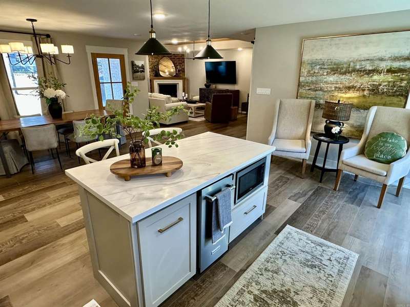 This Lakefront Home has it all! Short golf cart ride to Thunderbird Country Club/Golf Course & all amenities, path permit to quiet Greers Ferry Lake cove . Damsite Recreation/Marina short drive away. This beautiful home has been totally remodeled inside and out. The quality of workmanship is so good you can not tell the new construction portion from the original home. Two Master Bedroom suites with private baths, 5 total BR's & 4 full BA's, main living room and lower level Game Room/Den. Exterior with upper level deck and lower level stone patio & firepit area. The perfect full time home or weekend retreat with the ability to vacation rent if desired, located at the end of the cul-de-sac. The home has been staged with all new furniture and decor that can be purchased for an additional cost. SEE ASSOCIATED DOCUMENTS FOR ADDITIONAL INFORMATION ON REMODEL, SURVEY AND FURNITURE/DECOR COST
