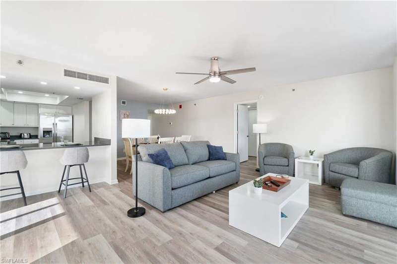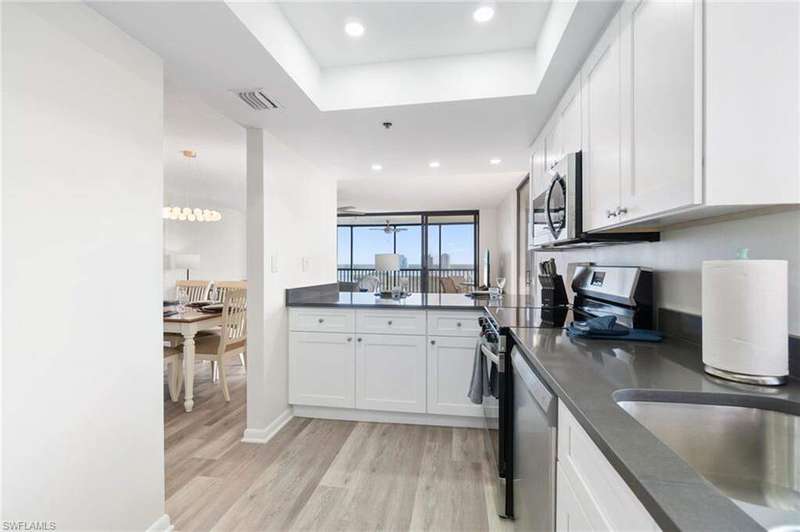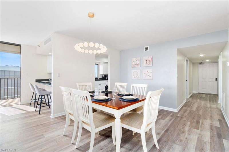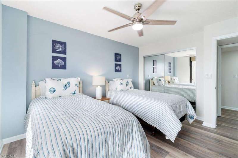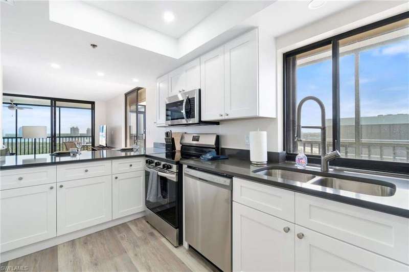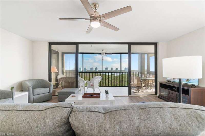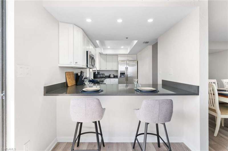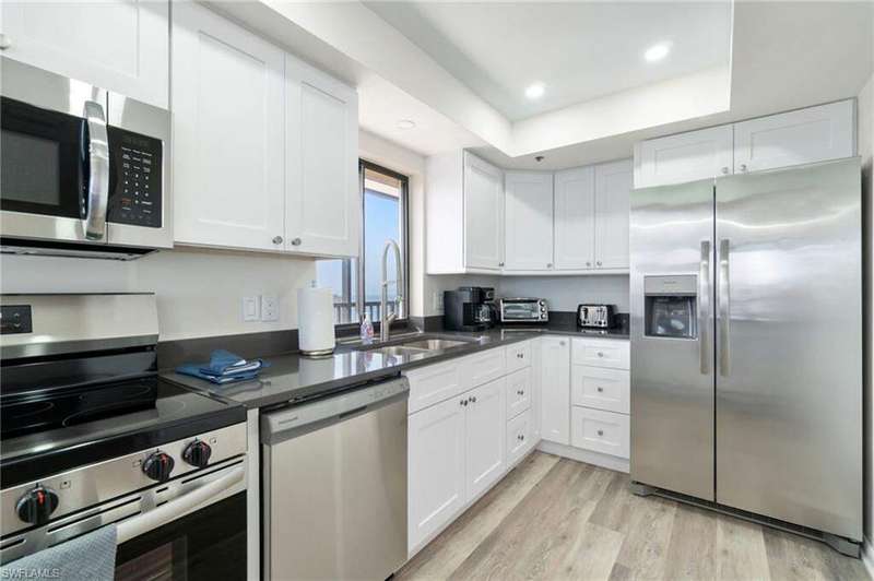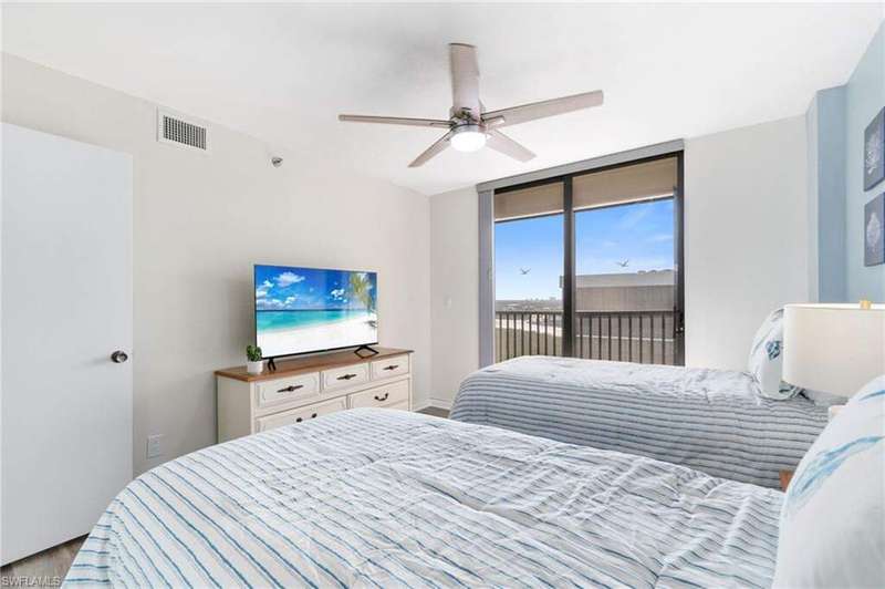 AVAILABLE 2026 SEASON! Welcome to Bay Harbor Club on Bonita Beach! Nestled along Florida's breathtaking coastline, this stunning penthouse residence offers captivating ocean views, golden sunsets, and all the comforts of home. Located directly across from Bonita Beach Access #9, Bay Harbor Club is the perfect destination for a small family getaway or a couple's retreat. Whether you're escaping winter's chill or embracing summer's warmth, your beachside relaxation begins here. Step inside and be greeted by an inviting, open space filled with natural light. The bright living and dining areas flow seamlessly, with expansive bay and ocean views visible through sliding glass doors that lead to the spacious wrap-around balcony. This outdoor oasis, complete with a screened lanai, is ideal for savoring morning coffee, soaking in the scenery, or hosting a gathering. The fully equipped kitchen features granite countertops and modern appliances, including a large refrigerator, oven, microwave, and dishwasher. Whether preparing a casual snack or a gourmet meal, the kitchen has all the cookware, utensils, and tableware you'll need. The dining area and breakfast bar offer plenty of space for enjoying meals or entertaining guests. The primary suite provides a serene retreat with a king-sized bed, ample storage, and an ensuite bathroom boasting a double vanity and walk-in shower. The second bedroom is designed for comfort with two twin beds and convenient access to a full bathroom located just down the hallway, which includes a combination shower and tub. An additional two guests can be accommodated in the pullout sofa in the living room. For added convenience, the residence also features an in-unit laundry area. This 2-bedroom, 2-bath slice of tropical paradise combines modern comfort with timeless coastal charm. Reserve your stay today at Bay Harbor Club and make your Bonita Beach dreams a reality.
