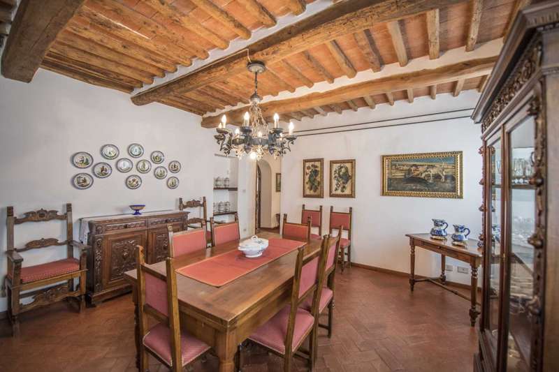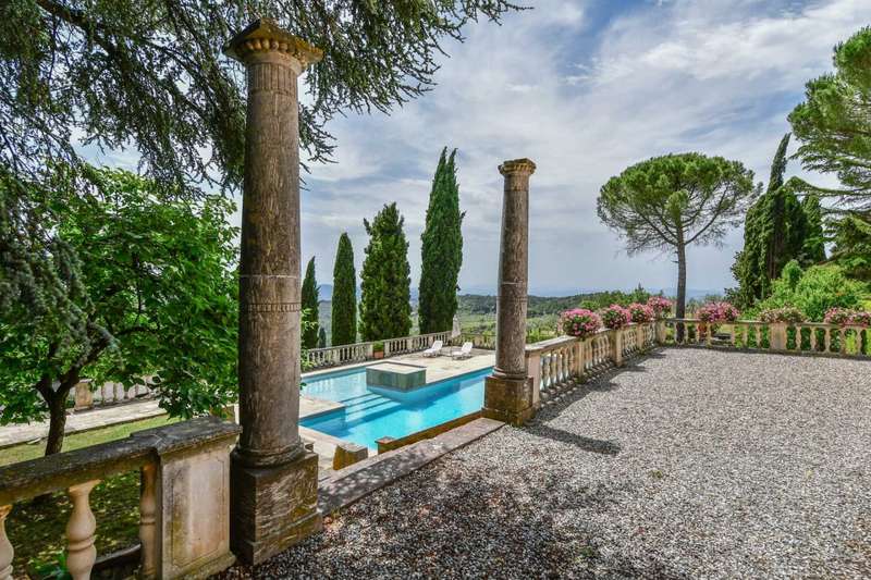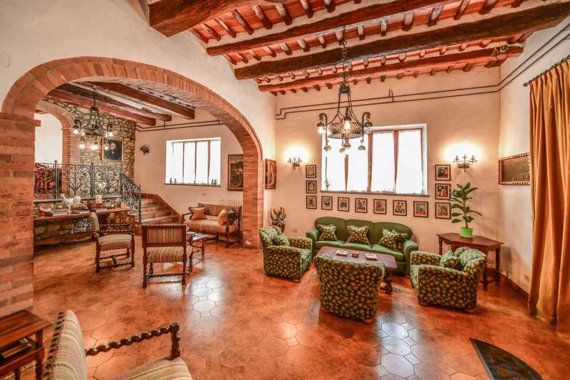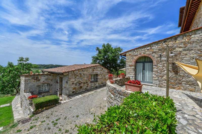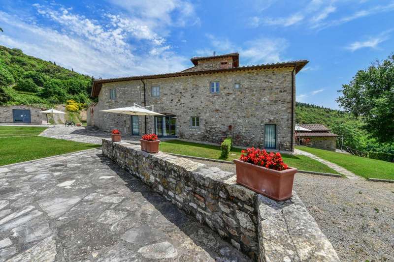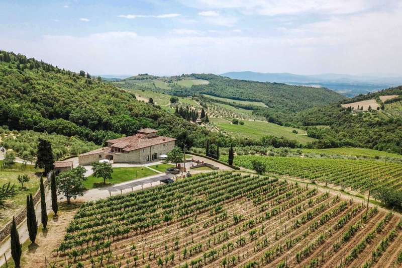 In the heart of Chianti Classico, in a panoramic position not far from Castellina, this 158.5-ha estate hosts several buildings (4,431 sqm) among which a manor villa, a wine cellar and farmhouses currently used for guests Agriturismo. The vineyards (19.4 ha) allow producing up to 110,000 bottles of Chianti Classico DOCG and Reserve wine, while the olive grove (21.2 ha) can produce up to 5,000 kg of oil. The estate is easily reached via the municipal road network and is located right in the heart of Tuscany, a feature which greatly enhances its appeal as an accommodation business, allowing easily moving throughout Tuscany and easily connected to airports. Villa Iolanda (935sqm –8 beds - 8 baths) is a building in late-baroque style and dates back to the 18th century. The restoration was carried out between 2003-04. The building houses 3 halls, one of which with independent access, 2 dining rooms, a studio, 8 double bedrooms with private bathroom. The villa is embellished by a finely landscaped garden which hosts the panoramic swimming pool. The manorial complex is completed by a warehouse, a tavern with oven and a consecrated chapel ideal to celebrate weddings. Naccolino (837sqm –12 beds and 12 baths) is a 14th-century building split into 5 apartments with independent access and can host up to 25 pers. Outside, a swimming pool is reserved for the guests of the structure. Casa al Bosco (258 sqm -7 beds-6 baths) is a 14th-century building split into 4 apartments which could host up to 14 pers. The farmhouse is located amidst the wood, in a quiet and retired location. The hamlet Naccolone (1,692sqm) is the real heart of the estate and is made up of buildings dating back to the 14th century assembled around a small square with a fountain. These buildings house the offices, the salesroom, the wine cellar (671sqm) and the olive mill (162sqm). Other rooms can be used by the staff. We have the 14th-century Podere Gaversa (356 sqm 4 beds - 2 baths), not yet restored but split into 2 apartments: Lastly, the building Capraie (353 sqm) houses ample storage rooms and a garage. The buildings in the property, except for the manor villa, are Typical Tuscan farmhouse with stone and masonry walls. Inside, all the typical features of countryside buildings have been preserved and we can find terracotta floors, wooden beams and stone fireplaces. The villa is a beautiful 18th-century building with original finishes which include ample halls with huge windows allowing a great deal of light to enter the building. The estate covers a total surface of 158.5 hectares. Backbone of the estate are the Chianti Classico DOCG vineyards (19.4 ha) and the olive grove (21.2 ha). The remaining surface is split among fruit orchard (0.3 ha), mixed woodland (105 ha), arable and unused land (12.6 ha). Buildings are surrounded by gardens and pertinences for a total of approximately 13,700 sqm.