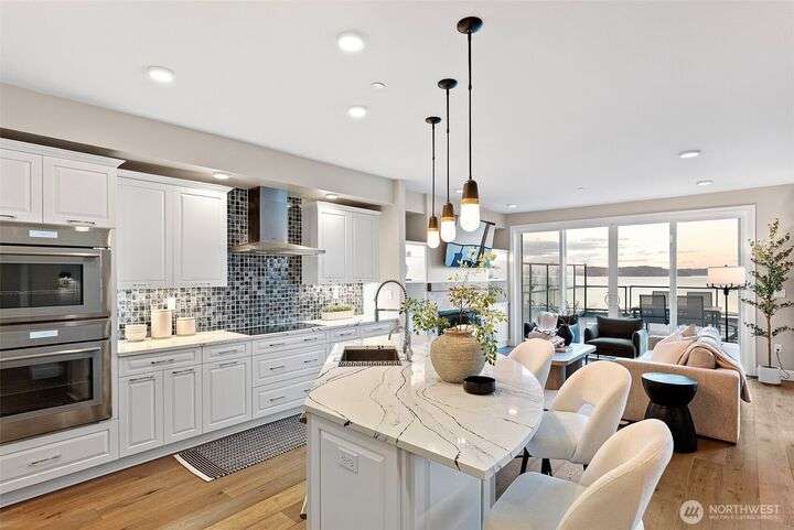 Breathtaking panoramic views of Commencement Bay & Mt Rainier meet the epitome of luxury living! Discover unparalleled beauty & enviable amenities in this Ruston community. Host in style thanks to open-concept living w/chef-ready kitchen (including walk-in pantry), elegant formal dining & living room haven. Massive deck expands your possibilities for epic entertaining & vacation-inspired relaxation; admire views of whales & boats passing by! Resort-worthy primary suite boasts spa-like bath, huge walk-in closet & view deck access. Elevated design, high-end finishes & natural light let each space shine w/perfection. Ruston Way waterfront path, extensive dining & shopping, entertainment, parks, & more all at your fingertips at Point Ruston.