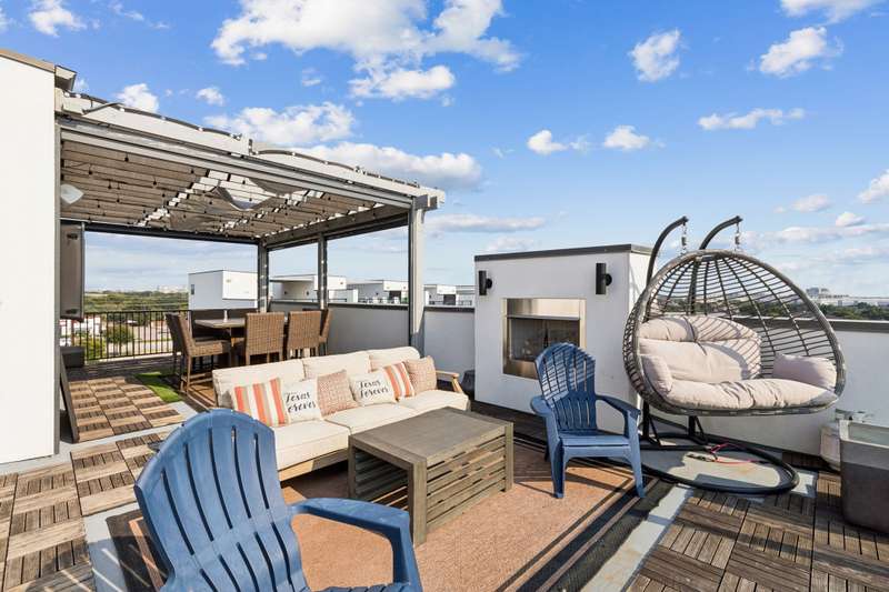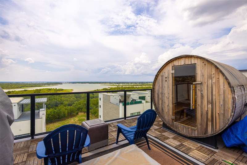 Luxury Corner Townhome with Rooftop Oasis + Smart Home Integration. Experience elevated living in this stunning 4 story Corner unit townhome featuring panoramic lake views + a fully integrated smart home experience. Built with contemporary elegance and top-tier materials, this newer construction boasts 5-inch wide plank real oak wood flooring throughout every level.With this Smart Home is complete control at your fingertips with whole-home audio, video, lighting, and blinds all operable via the RTI App. Speakers are integrated throughout every room, bathroom, and hallway. All lighting is on Lutron dimming switches, and every window is fitted with custom Hunter Douglas motorized shades. Step out to the Rooftop. Which is a true showstopper ...complete with custom flooring, a built-in Coyote grill, outdoor fridge and sink, and two zones of outdoor speakers with a subwoofer. Relax year-round with a full sauna and motorized UV shades enclosing all sides of the pergola.An Entertainers Dream Living Room; the custom wet bar is the centerpiece of the living space, featuring a nugget ice maker, beverage fridge, dual-zone wine cooler, dishwasher, glass shelving, and a stunning glass tile backsplash. Step into the Chefs Kitchen with a professional Thermador appliance package, including a 48 6 burner range with griddle, steam and convection ovens, warming drawer, and commercial-grade hood. The showstopping 5x8 dual waterfall quartz island includes hidden storage and is complemented by a food-grade butcher block prep island. All cabinetry throughout the kitchen and bathrooms is high end Milania soft-close.Relax in the Spa Inspired Bathrooms:Every bathroom features floating Milania vanities with vessel sinks. The primary suite showcases an oversized custom glass steam shower for the ultimate spa-like experience.This home effortlessly blends luxury, technology, + lifestyle perfect for the discerning buyer seeking modern elegance and convenience in one exceptional package