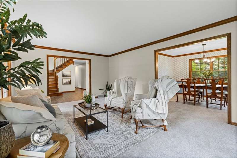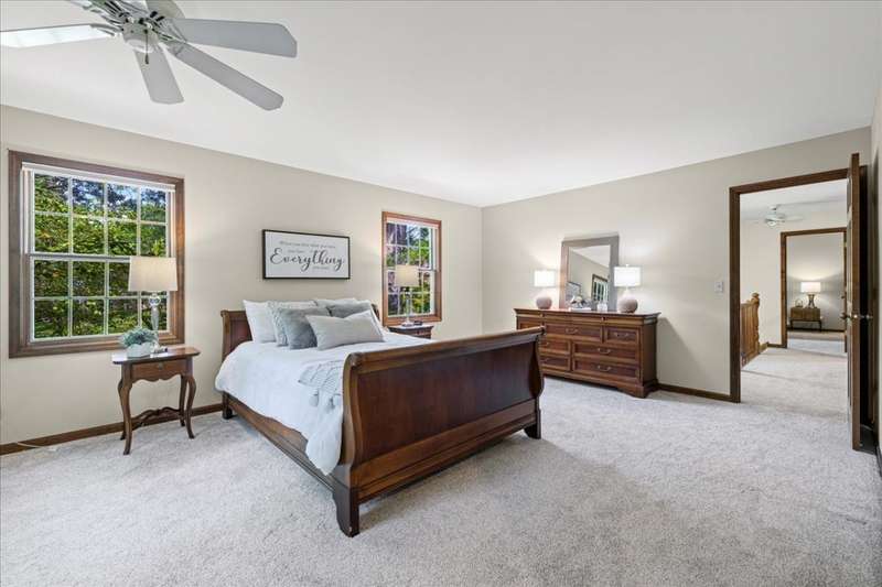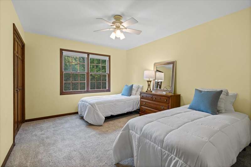 It feels like the country, but minutes to Everything! Set back on a quiet 1.7 PRIVATE acre homesite in the desirable Springs subdivision, this ORIGINAL OWNER 4 bdrm.home is nestled amongst beautiful trees and offers a tranquil and PRIVATE back yard. Enjoy approx.3500 sq. ft. of total living space with a FINISHED WALKOUT in this home featuring 4 generous bedrooms and 3.5 baths. Lush green views of nature from every window on the back side of the home. You'll enjoy the ambiance in the family room with wood ceiling beams and a handsome masonry fireplace. The kitchen has an eat in area with a separate wet bar for entertaining. Step out the slider doors onto the deck for your morning coffee and beautiful sounds of birds. PJ's are perfect, because it truly is private. The upper level hosts the bedrooms, including a primary suite with updated bath that boasts a NEW dual vanity with quartz tops, a step in shower AND a tub/shower combo. The FULL FINISHED WALK OUT is an awesome space, perfect for possible multi-generational needs. A huge 2nd family room and a wet bar with built in cabinetry offers plenty of separate living space. RESTORE after a long day and enjoy a spa-like experience with a cedar dry sauna room and a huge soaking tub, perfect for hydrotherapy. Located on a quiet cul de sac street with NO THROUGH TRAFFIC is a plus. The neighborhood offers abundant natural beauty, mature trees and ponds for residential use. Walking distance to TOP RATED Prairie Ridge HS, and mins. to paved 26 mile Prairie bike trail, Sternes Woods, Veterans Acres, Three Oaks Recreation, downtown CL shopping, Northwestern Hospital, Metra train station, golf courses and more. LOW TAXES. Fresh paint, NEW Carpet and refinished wood floors. NEW A/C and Furnace/2023. Move-in and enjoy nature and a slower pace. QUICK CLOSE possible.