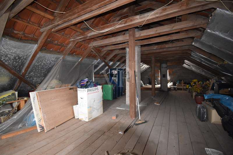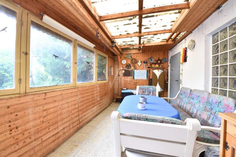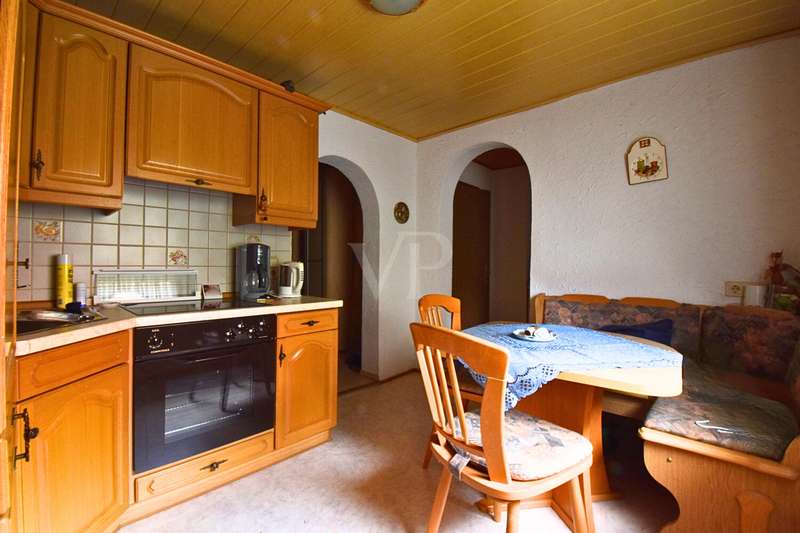 This charming home combines historical character with versatile usage options, ideal for large families, as a multi-generational home or for people looking for rural tranquillity, plenty of space and yet close to the city. The house offers six rooms, two bathrooms, two kitchens on two floors, a quarry stone cellar, a garage as well as approx. 360 m² of land and approx. 130 m² of living space. The solid old building dates back to 1900 and was completely renovated in the 1970s. Since then, the property has been regularly maintained but not modernized. A certain level of craftsmanship would therefore be an advantage in order to exploit the full potential of this house. As soon as you enter the property, you are greeted by a front garden of around 60 m², which offers pleasant privacy thanks to a dense green hedge. From the front garden you have direct access to the enclosed rear courtyard, from which you have access to the garage and conservatory. The property is fully fenced and therefore ideal for keeping dogs. All rooms in the house benefit from natural daylight, which is made possible by double-glazed wooden and plastic windows (built 2014-2017). On the first floor, you are greeted by a tiled hallway from which you enter the spacious main living area. To the left is the bright living room with direct access to the front garden, a place that invites you to enjoy relaxing movie nights. The adjoining open-plan living/dining kitchen is ideal for cooking evenings with family or friends. From here, you enter the first bathroom, which is equipped with a shower and bathtub and is particularly easy to clean thanks to the floor-to-ceiling tiling. A large window front in the adjoining dining room provides plenty of natural light and pleasant ventilation. There is also a flexibly usable guest room on the first floor. A staircase on the right-hand side of the hallway leads to the original quarry stone cellar and the upper floor, where there is a lovingly designed granny apartment. This comprises three rooms, including two bedrooms and an additional office, a large bathroom with corner bath and shower as well as an open-plan living/dining kitchen with adjoining living room. Laminate flooring and carpeting are also found here, creating a homely atmosphere. The granny apartment is separately secured and has its own electricity box. The first bedroom offers plenty of space for individual design, a PVC window from 2017 and carpeted flooring for homely comfort. The second bedroom with adjoining office is perfect for children or for working from home. In the kitchen with direct access to the living room, everyday life can be arranged in a pleasant way, whether it's eating together, relaxing TV evenings or just being together without missing out on anything. Your new home has an outbuilding that provides access to both the garage and the attic. This offers plenty of storage space and potential for expansion. Please note that no energy certificate is available for this property, as there is currently no functioning heating system. The hot water is provided by a central hot water boiler that supplies the entire house. This house offers numerous possibilities: as a family home, as a retreat with plenty of space for personal development or as a project for people with ideas and craftsmanship. The combination of rural location, good connections, established neighborhood and solid building fabric makes this property a special opportunity for anyone looking for a home with character and potential.