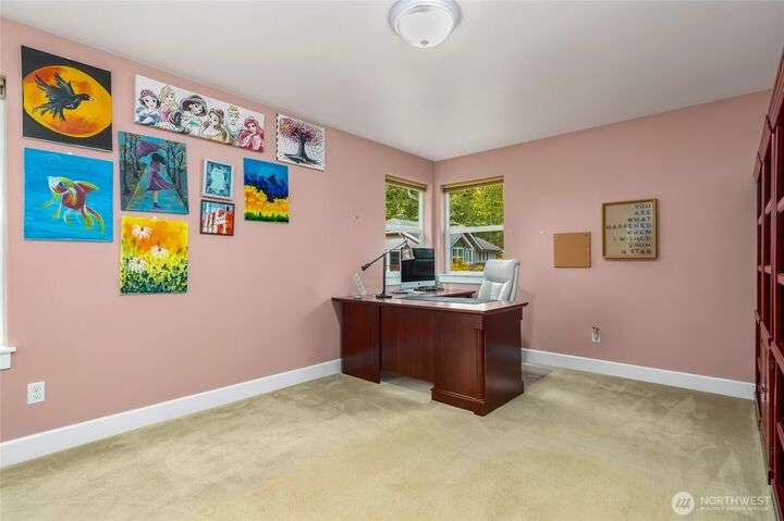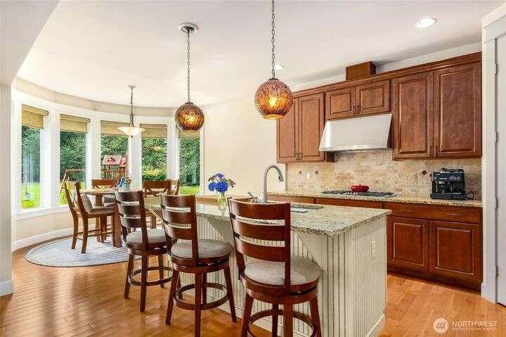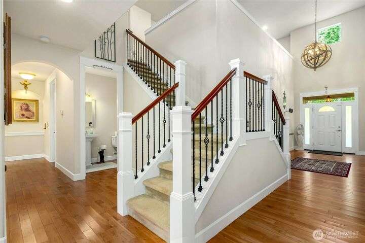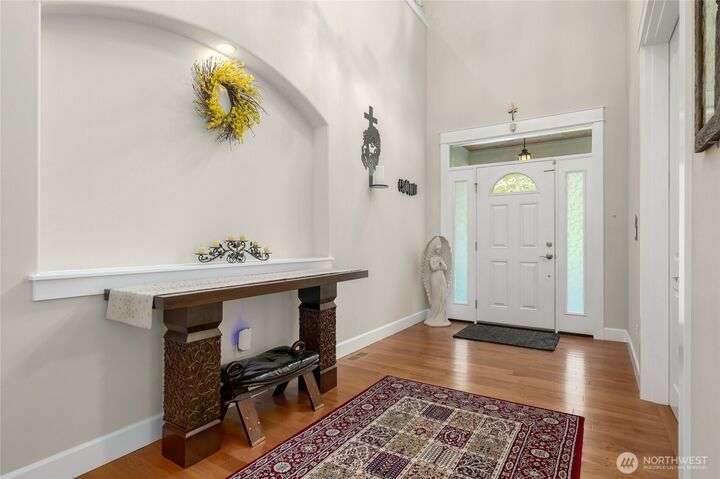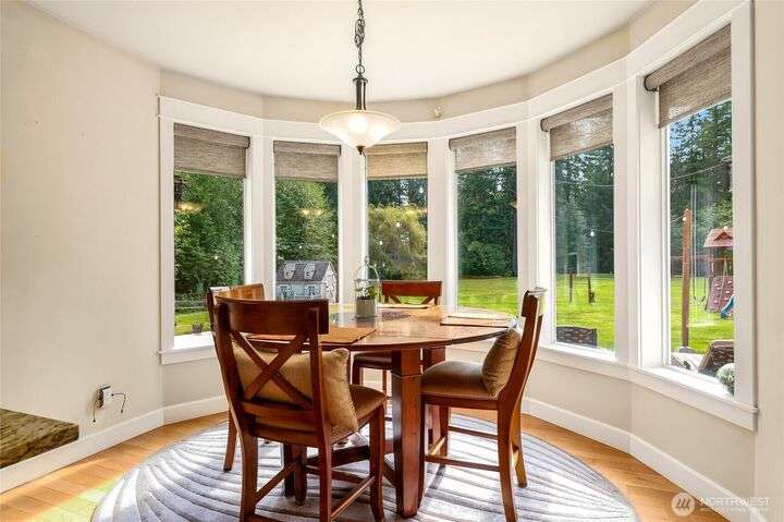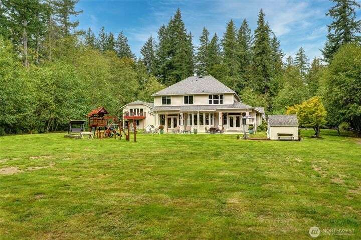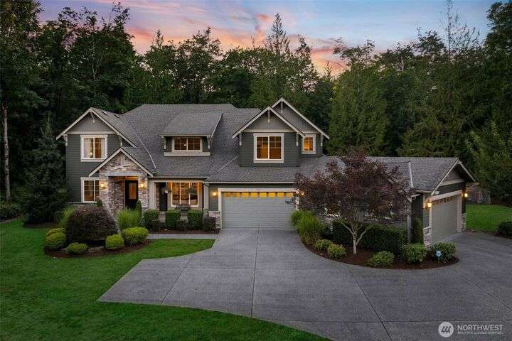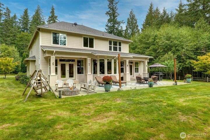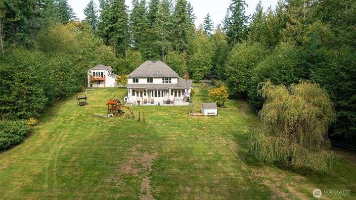 Sophisticated living awaits in this 3,770 sq ft Fall City estate, set on nearly 5 serene acres. A grand two-story entry with gorgeous chandeliers welcomes you into a bright, open design w/ main floor primary suite, hardwoods, & elegant living spaces. Upstairs features three bedrooms, a versatile bonus room, and an expansive loft ideal for a media retreat. The detached 3-car garage includes a luxurious 923 sq ft ADU with full kitchen, bedroom, and great room—perfect for guests, multi-generational living, or rental income. Surrounded by trails, steps to Snoqualmie Ridge shops and dining, and across from Lake Alice boat launch for fishing or paddleboarding. Award-winning schools, 17 minutes to Issaquah. Everyday living feels like a vacation.