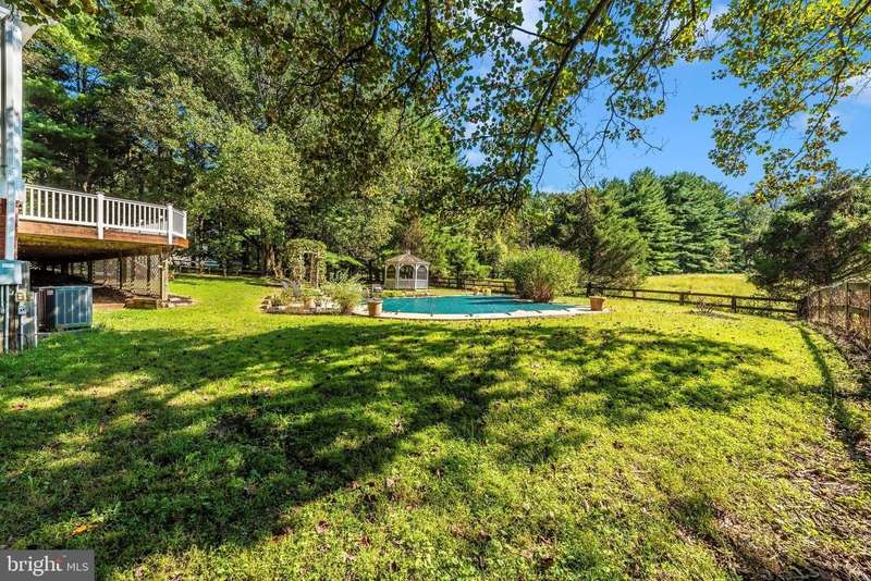 BRING YOUR HORSES HOME TO THIS PRIVATE EQUESTRIAN OASIS IN SYKESVILLE, HOWARD COUNTY! Nestled on 6.21 park-like acres in the highly sought-after Marriott's Ridge School District, this exceptional property offers a rare blend of privacy, convenience, and equestrian potential - including PERMANENT DEEDED ACCESS TO THE PATAPSCO STATE PARK TRAIL SYSTEM, perfect for endless riding adventures. Equestrians will appreciate the CENTER-AISLE 3-STALL BARN, complete with electric, a tack room, and grooming/wash stall with potential for hot & cold water (currently disconnected). There is also a finished office space with water, heat and A/C for countless ideas including a home-based business, lounge or guest area. Turnout options include a large, wood-fenced pasture with a small pond, plus two additional paddocks directly off the barn. (Please note: The property has not housed horses in over 10 years; fencing will require repair and replacement to bring it back to full function.) The CUSTOM-BUILT 3-BEDROOM, 2.5-BATH COLONIAL HOME is a showpiece of craftsmanship and character. Highlights include classic hardwood floors, stately moldings, three fireplaces (wood and pellet), and a SPECTACULAR SOLARIUM with stone accents and an 11-foot tray ceiling - perfect for year-round enjoyment and natural light. The eat-in kitchen features hickory cabinetry, stainless steel appliances, a butler's pantry, and direct access to the mudroom and oversized 2-car garage. Upstairs, the spacious owner's suite offers a walk-in closet, sitting area, and en suite bath with a separate claw-foot soaking tub. Two additional bedrooms and another full bath complete the second floor. In the FULLY-FINISHED WALKOUT BASEMENT, you'll find a cozy family room with built-ins, a laundry area, and storage. Outdoors, enjoy your private retreat with a fenced backyard, an expansive wood and vinyl deck, and a SPARKLING IN-GROUND SALTWATER POOL, perfect for summer relaxation or entertaining. Whether you're looking for the equestrian lifestyle, a private escape, or a unique opportunity to enjoy privacy just minutes from modern conveniences, this one-of-a-kind property delivers.