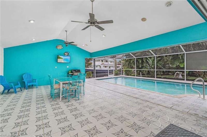 NEW LOW PRICE, BRING ALL OFFERS! FULLY FURNISHED HOME AND THE FLOOD INSURANCE IS ASSUMABLE. NO FLOODING WITH HURRICANE HELENE AND MILTON. "Experience unparalleled luxury in this stunning waterfront home in the prestigious Cape Coral Yacht Club Neighborhood, where opulence meets the tranquil beauty of Florida's Gulf coast. Boasting direct Gulf access with a mere 5-minute journey to open water and no bridges to limit your voyage, this property is a boater's dream come true. Situated on an oversized lot at the end of a serene canal, this 3 bedroom, 3 bath residence is the epitome of high-end living. The home welcomes you with a grand 12' wide patio slider that opens up to an expansive 800 square foot covered outdoor living area, complemented by an additional outdoor bathroom and a new resurfaced pool-complete with a NEW screen enclosure to ensure your utmost comfort. The allure of luxury doesn't stop there; NEW impact windows and doors, NEW high-end appliances, exquisite kitchens and bathrooms, a NEW pool heater and pump, and a state-of-the-art air conditioning system elevate the home's sophistication. Outdoor enthusiasts will revel in the 7,000lb boat lift, upgraded with a new control box and motors, ensuring your vessel is always ready for the open sea. Not to forget, the luxury aluminum dolphin mailbox adds a unique touch of coastal charm. Just a 5 min bike ride to the yacht club, beach and the boathouse restaurant this home is not just a place to live; it's a lifestyle! Must see to fully appreciate the blend of luxury and leisure that awaits. Don't miss the opportunity to own this piece of paradise! Sellers are willing to sell the home turnkey with the right offer.
