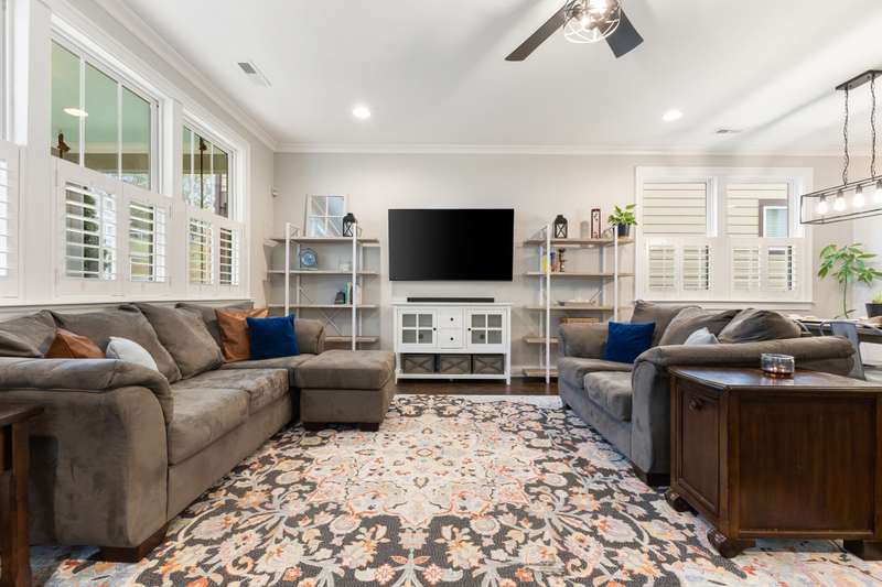Welcome to Cambridge Park, a highly desirable neighborhood with only 77 homes! This delightful home features a thoughtfully designed layout with ample space. Before you step inside, take a moment to relax on the covered front porch equipped with a built-in swing. The main floor features gorgeous hardwood flooring that flows into a spacious living room, which connects effortlessly to the kitchen, making it ideal for hosting gatherings. The kitchen comes with upgraded cabinets, granite countertops, a tile backsplash, an island, stainless steel appliances, and a charming breakfast nook. There's also a sunroom that can function as a playroom or office, providing access to the backyard and a door that leads to the two-car rear-entry garage. For your convenience, a half bathroom and laundry is located on the main level. This stunning home has been enhanced with built-in plantation shutters, new lighting fixtures throughout, crown molding, and ample storage in closets with built-in shelving. Upstairs, you'll discover the primary suite, which includes a spacious walk-in closet, a tiled shower, and a double vanity. This level also features two additional bedrooms and a full bathroom. Step outside to the patio and enjoy the extended area with a sitting space, grilling area, and plenty of green space, perfect for relaxation and privacy within your fenced yard. The community offers beautiful green spaces, ample open areas, and sidewalks. The charming Cambridge Park community is conveniently situated just a 10-15 minute drive from Brentwood, Cane Ridge Park, and Lenox Village, with easy access to the interstate and nearby shopping and dining options. Don't miss the opportunity to make this wonderful place your home.
