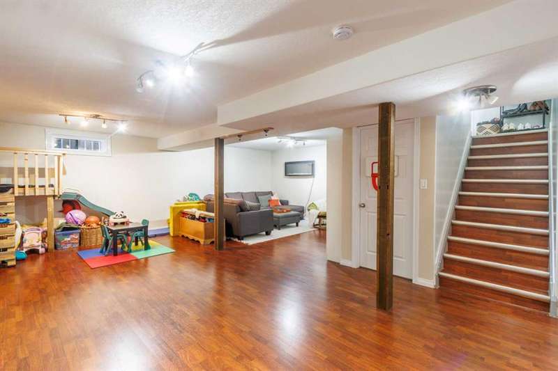 Discover this charming and well-cared-for bungalow, perfectly tucked away on a peaceful, tree-lined street in Carstairs. This home shows pride of ownership from the moment you arrive and has seen numerous recent upgrades, offering true move-in-ready convenience. Curb appeal shines with a mature yard and an inviting front porch that welcomes you inside. Step through the new exterior door into a bright, open layout featuring a spacious foyer that leads seamlessly into a sun-filled living room and comfortable dining area — ideal for both relaxing and entertaining. The kitchen is warm and bright, with a clear view of the expansive fenced backyard, perfect for watching kids or pets play. Down the hall, you’ll find three generous bedrooms, including a primary suite with a private 2-piece ensuite, along with a modernized 4-piece main bath. The fully finished lower level adds impressive living space with a large recreation room, spacious fourth bedroom, and dedicated laundry and storage areas. Recent updates bring comfort and peace of mind, including new windows and exterior doors (2021), fresh interior paint, luxury vinyl plank flooring with new baseboards, and newer stainless steel appliances. Car lovers and hobbyists will love the heated double garage (21'4" x 23'2"), offering plenty of space for vehicles, tools, and toys. With its mature setting, thoughtful upgrades, and welcoming feel, this Carstairs bungalow offers the perfect blend of comfort, style, and functionality.