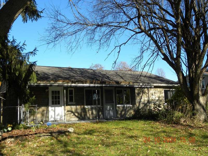 Large stone ranch on a 1+ acre lot. Just off the I86 Chemung exit. Kitchen cabinets, large combination living dining room with fireplace. Full finish-able basement. 100% Money Back Guarantee, there are some terms and conditions that apply.