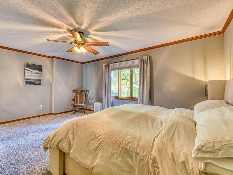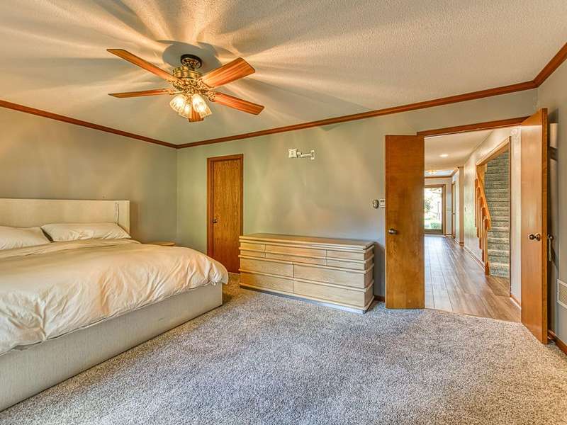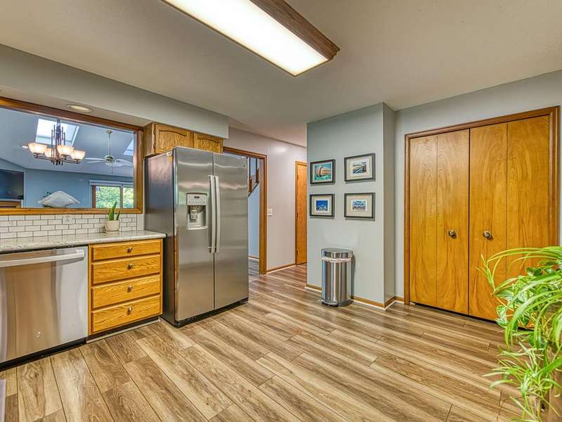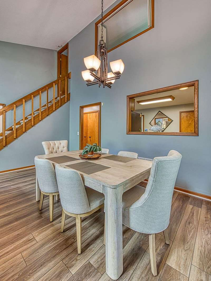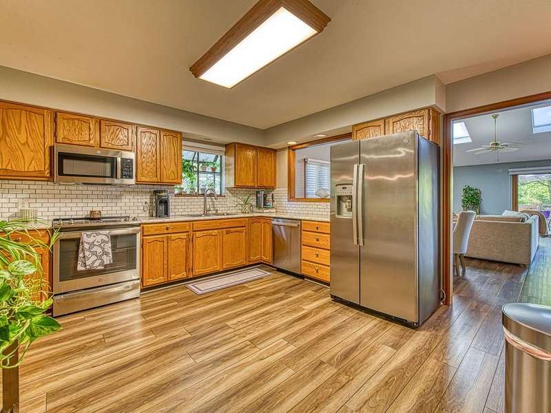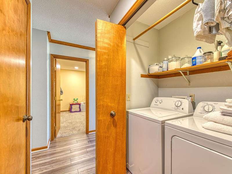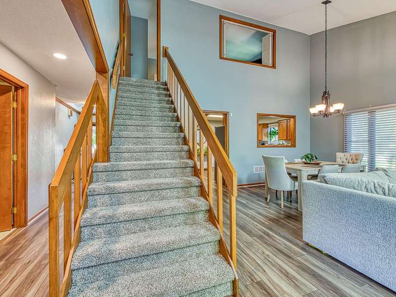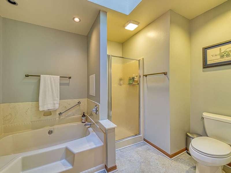 Updated and ready to move right in this spacious condo with a great floor plan. Newer laminate in the entry, living rm/dining room combo, and kitchen. Kitchen features newer countertops, subway tile and newer SS appliances. Living has vaulted ceiling with skylights, fireplace and slider door to private deck and mature landscaping. Large primary en suite and large second bedroom with newer carpet. Upstairs loft/bedroom with newer carpet. All this plus a finished basement with laminate floors.