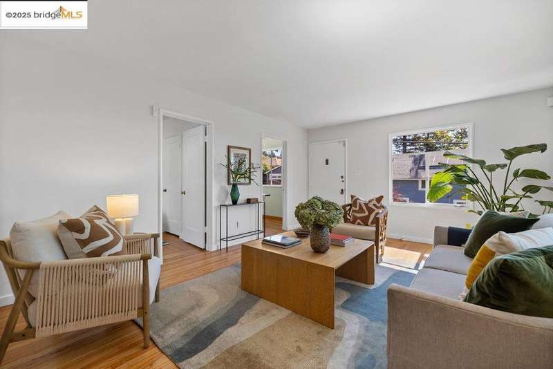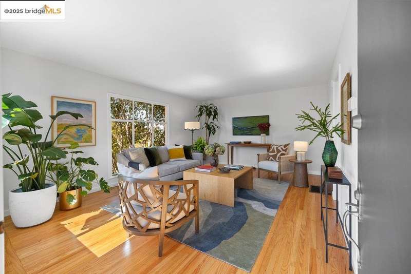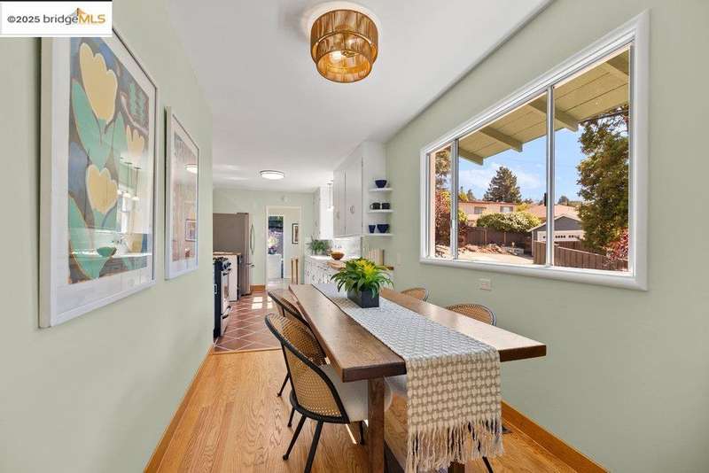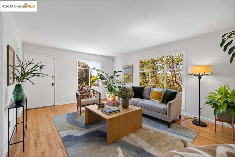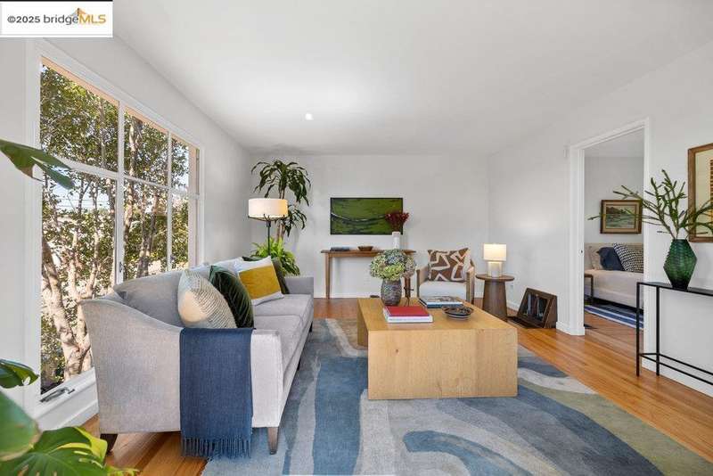 This Redwood Heights Gem is perched high and proud, yet has a more level entrance to the kitchen, offering the perfect balance of seclusion, charm and just enough connection to your neighbors. The home gets soaked in sunlight, making it feel like summer even on cloudy days. When you step inside, you're greeted with hardwood floors and a giant picture window serves up a side of filtered views and natural light. The living, dining room flow into the kitchen, whether you're prepping tacos or hosting a dinner party, the spacious kitchen has got your back. Two bedrooms are set apart from one another at either end of the hallway with the bathroom conveniently located in between. Off the kitchen, a separate laundry room provides added storage and access to the backyarda true highlight of the property. Step outside to find multiple zones for chilling, grilling, and gardening. The patio's prime for evening meals with a side of sunset views, while the deck and lawn give you all the peace and quiet you need to decompress, kick back and watch the sky do its magic every evening! This is Redwood Heightsone of Oakland's most sought-after and community-oriented neighborhoods: close to parks, shopping, restaurants, easy commuter access, and Redwood Heights Elementary (9/10 on greatschools.org)!