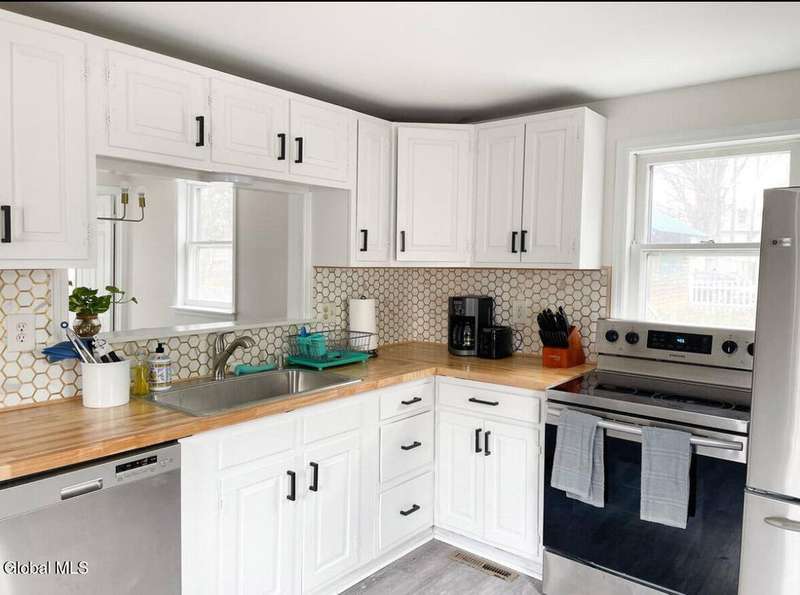This beautiful carriage house is available for rent just two blocks off Broadway in Saratoga Springs. Truly walking distance to downtown! It offers 3 bedrooms, 1.5 bathrooms, an eat-in kitchen with new cabinets, a formal dining room, and an inviting covered front porch. The house features gas heat, ample closet and storage space, and a separate laundry room with washer and dryer. It is located on a quiet street and is in excellent condition. Freshly painted and brand new flooring. Includes one off street parking space! The owner/landlord is a licensed associate broker.
