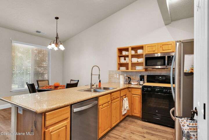 Great location and well-maintained beautiful Lake Forest townhouse! Home features 3 beds and 2.5 baths, including a main-floor master bedroom with a walk-in closet and en-suite bathroom. Granite Counter tops throughout! Kitchen and Dining/living room area has vaulted ceiling with a cozy gas fireplace which leads to the fenced back patio and garden. Newer Refrigerator, Gas Stove/Range, Microwave, Dishwasher, Hot Water tank are all less than 2 years old! Seller is also including Washer/Dryer and a home warranty! Centrally located off of Hanley Ave between Ramsey Rd and Hwy 95 for easy commute to shopping, dining, medical, etc.! All you need to do is move in and enjoy! Come home for the Holidays!