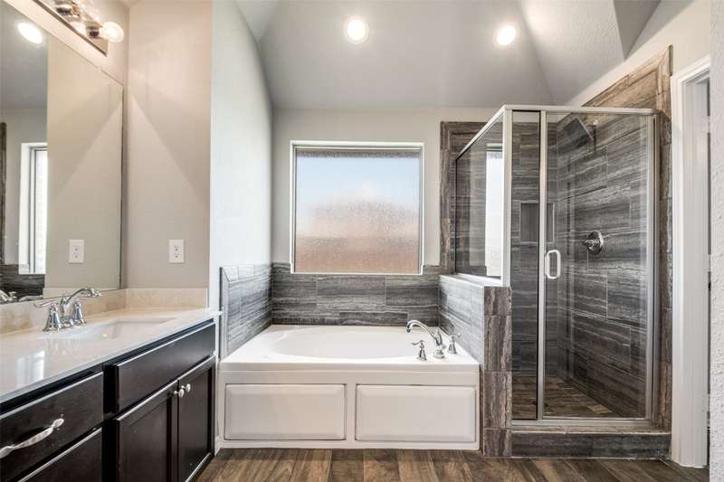 ***UPDATED PICTURES ADDED*** Welcome to this beautifully maintained one-story home built by Robbie Hale Homes, located in the desirable new phase of the Rolling Meadows Addition in Royse City. Freshly painted throughout and featuring brand-new luxury vinyl plank flooring in all bedrooms, this home offers a clean, modern look with low-maintenance living. The open-concept living area includes a cozy corner fireplace, ceiling fan, and seamless flow into the spacious kitchen with stainless steel appliances perfect for entertaining and everyday living. The large primary suite boasts a generous walk-in closet and en-suite bathroom complete with granite composite countertops, double vanities, jetted tub, separate shower, and elegant ceramic tile finishes throughout.Dont miss this move-in-ready gem offering comfort, style, and convenience in a growing community.