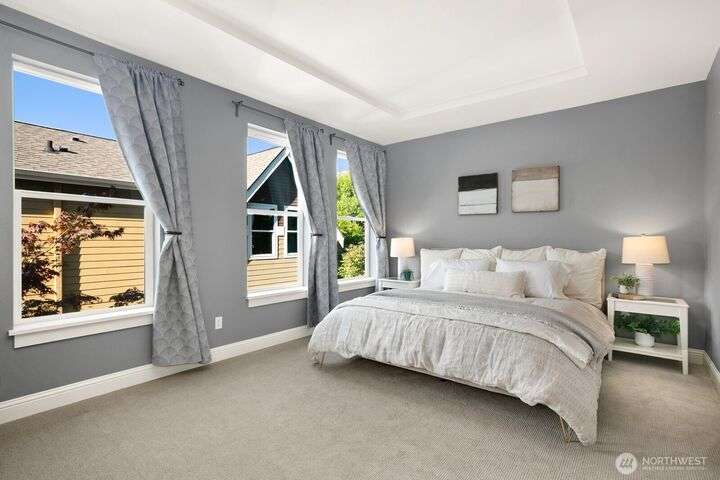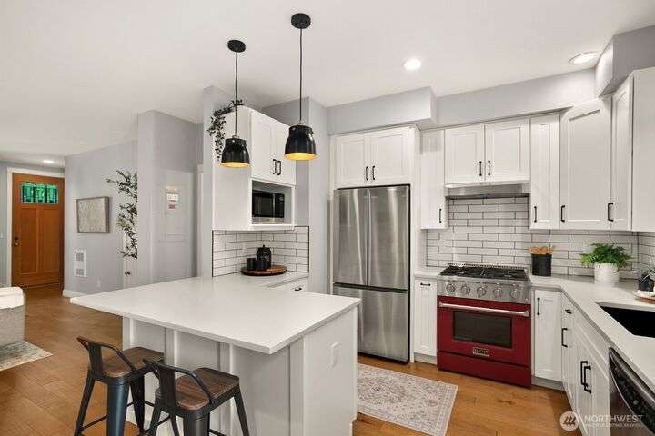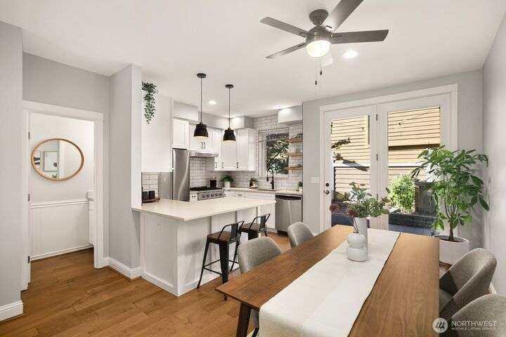 Beautifully refreshed & thoughtfully designed home in High Point! Located on a quiet stretch of tree lined streets near all the best parks/playgrounds + a sport court, this home is a choice find. Great room w/tall ceilings & big windows on the main, w/a remodeled kitchen that opens to the private courtyard-ideal for daily living & entertaining. The second floor offers an expansive primary suite w/5 piece bath & walk-in closet. Also on this floor is the spacious office area & laundry. The top floor hosts 2 bedrooms, each w/walk-in closets & a full bath. Detached garage w/alley access makes for easy parking & unloading. Solar panels installed in 2022 are a special upgrade for this home. New carpet, paint & flooring make this home like new!