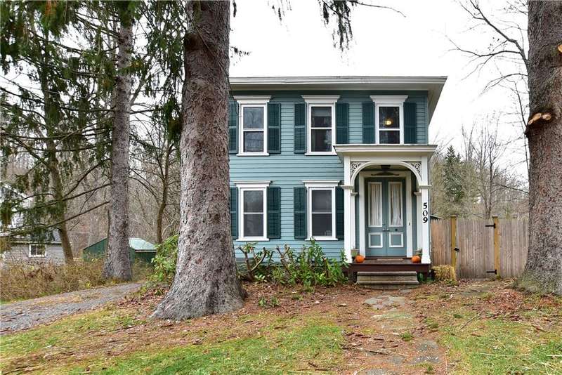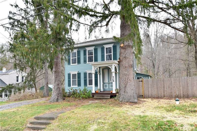 Here's your chance to own a classic in the heart of Brooktondale! This lovely two-story Italianate from 1840 has been lovingly cared for throughout its history. Warm and inviting, this 4-bedroom, 2.5 bath home with a grand staircase offers large living and dining rooms and a spacious eat-in kitchen with stainless appliances. A wood stove centrally located in the dining room heats the whole house, as does the natural-gas furnace. Beautiful hardwoods and tile throughout, with radiant floor heat in the kitchen and baths. A three-season sunroom looks out to the fully fenced yard, beyond which are the steps leading down to your own piece of Six Mile Creek, just a few feet from a gorgeous swimming hole. An easy walk to Brookton's Market, the community center, and the Old Mill, and a short drive to Shindagin Hollow. Isn't it time you came home to Brooktondale?