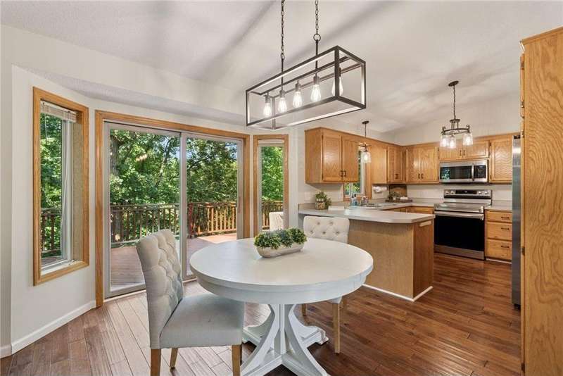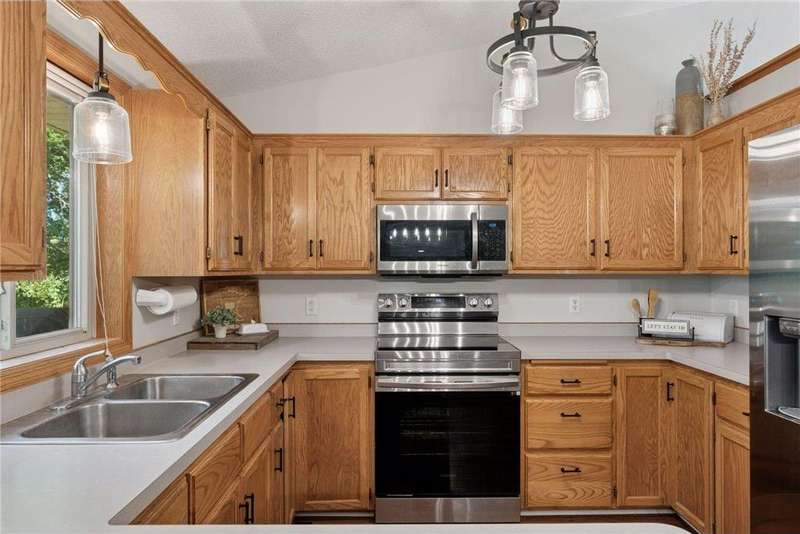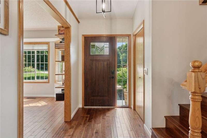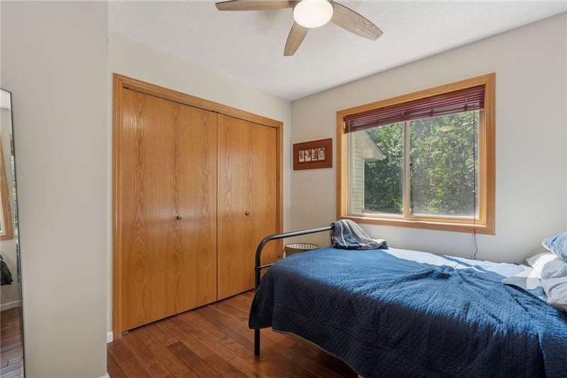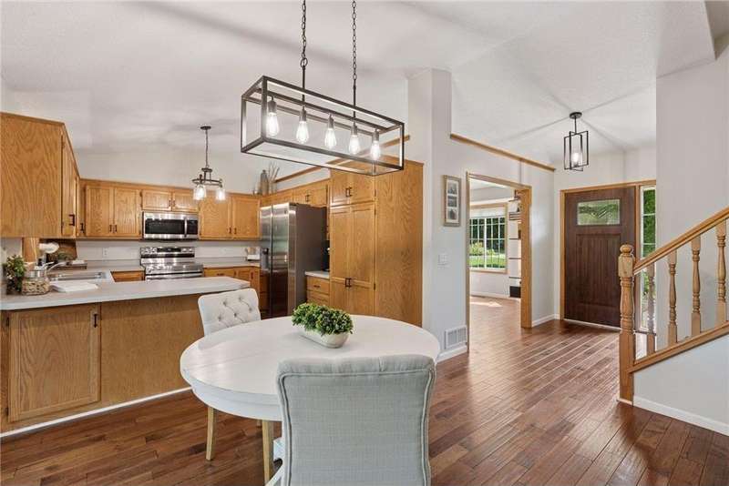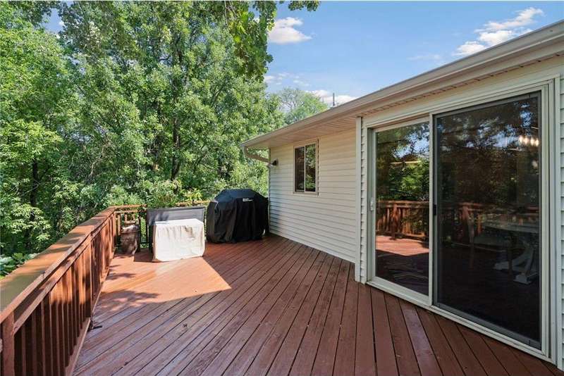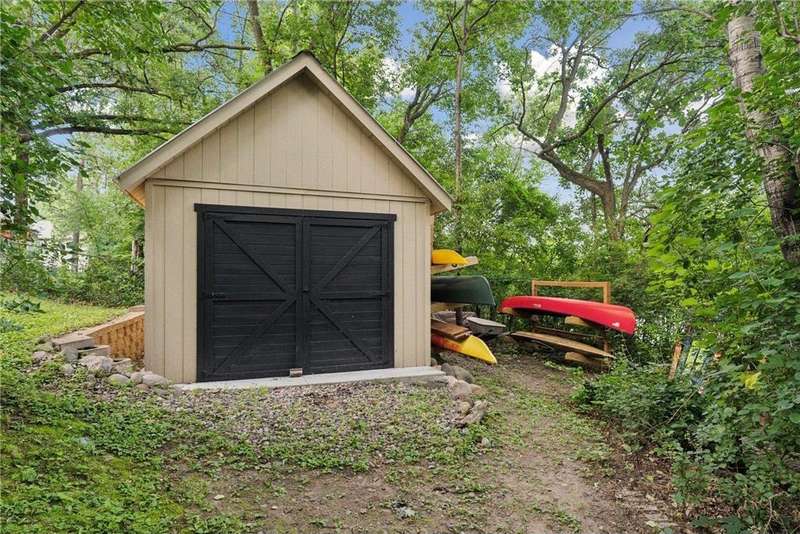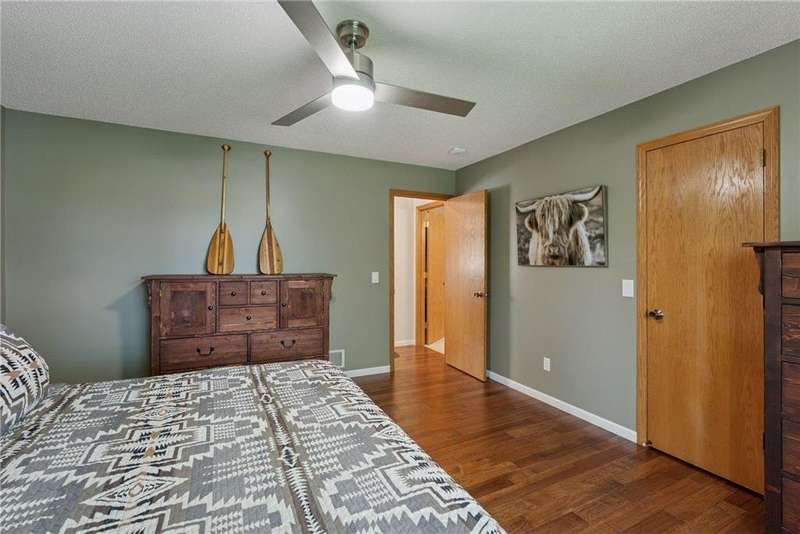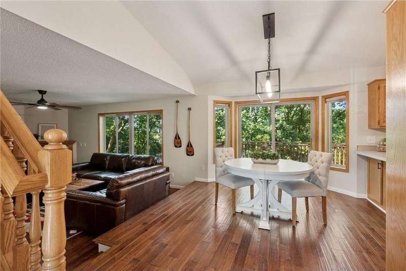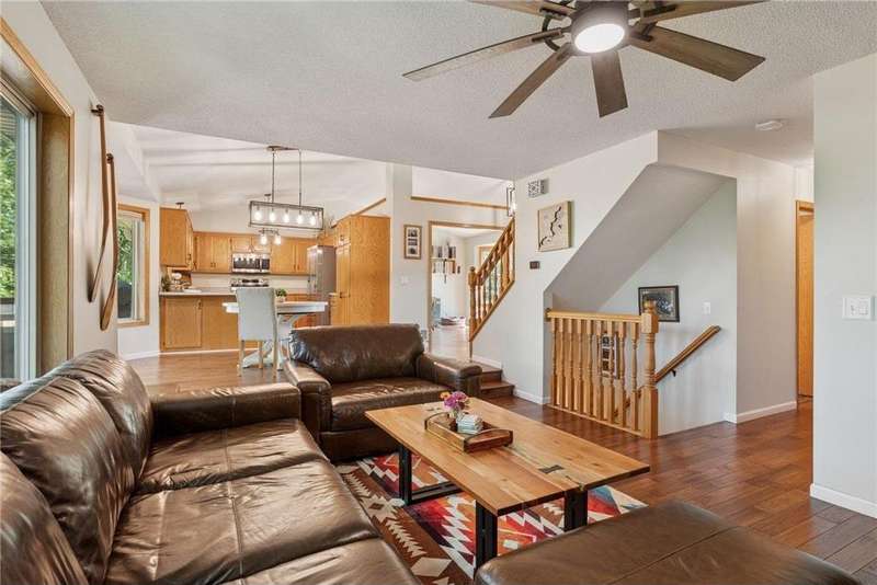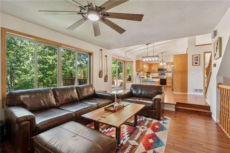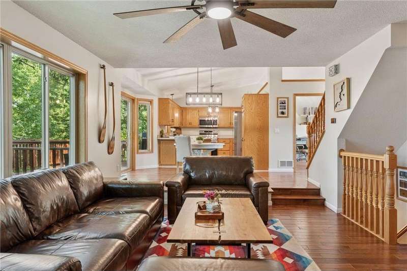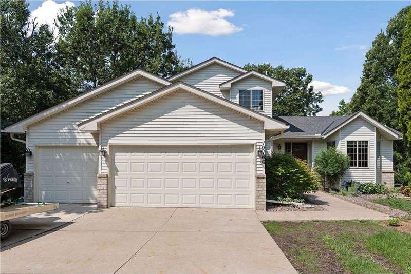 This beautiful, modified two-story home offers the ideal combination of peaceful waterfront living and convenient access to everything Elk River has to offer. Situated on a quiet cul-de-sac, the property provides privacy, natural beauty, and a prime location. From the west-facing deck, take in breathtaking sunset views over the water, or enjoy them from your private dock. Spend warm summer days on the water and transition effortlessly into winter with your own backyard pond hockey setup. Inside, the open floor plan features vaulted ceilings, expansive windows, and abundant natural light. Newly installed hardwood floors flow throughout the home, complemented by a new roof, gutters, water heater, and complete HVAC system for peace of mind and year-round comfort. The finished walk-out lower level offers a spacious recreation room and a fourth bedroom, currently being used as a home gym, opening directly to the backyard oasis. The newly constructed storage shed accommodates all of your seasonal and outdoor gear and includes French drains for proper drainage. This home has it all!
