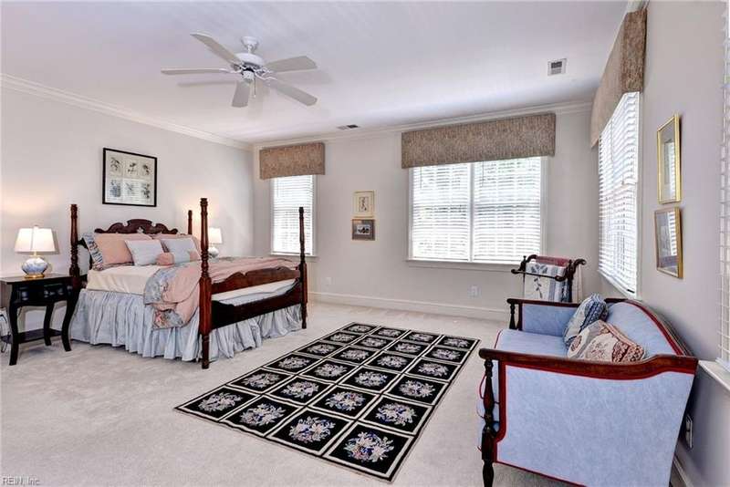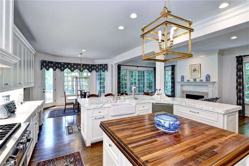 Live and enjoy the good life in this stately golf-front, brick home in wonderful Governor's Land. Fine craftsmanship, generous room sizes, soaring ceilings and luxurious materials will impress the most discriminating buyers. The kitchen is the heart of the home and can only be described as MAGNIFICENT! It is a gourmand's dream and has ample marble counter space, farm sink, walnut-topped island, breakfast bar, eat-in area, luxury appliances (Cove, Wolf, Sub Zero), pantry w 2nd Sub Zero and is open to a keeping room with fireplace. Main floor primary bedroom is the perfect retreat. Primary bath equipped with soaking tub, frameless glass shower, water closet with bidet, heated floors and towel bar. Butlers pantry, wet bar with wine cooler, temperature-controlled wine storage in lower level, plus flex spaces and 4 additional bedrooms upstairs. Stand-by generator, golf cart storage, encapsulated crawlspace, Navien hot water heater, whole-house surge protector, security system and more.