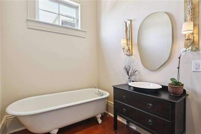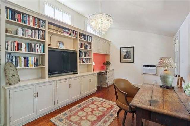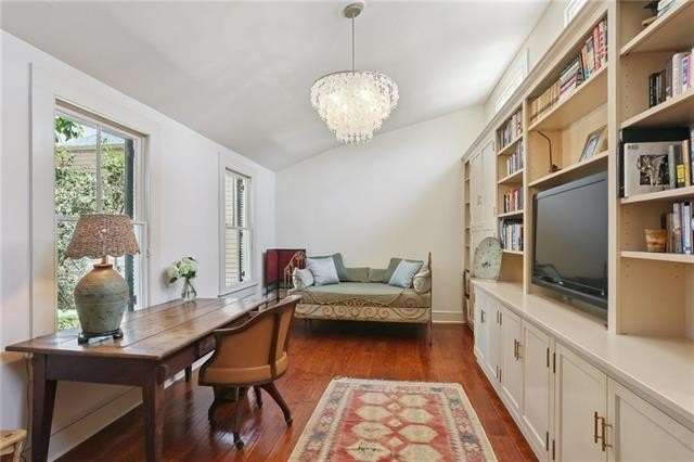 Exceptional Victorian side-gallery cottage with a sweet, shaded front porch, flexible layout, and superb condition throughout. 3BR/2BA with soaring 12-ft ceilings downstairs and 11-ft upstairs. Wonderful architectural details abound, with newly refinished heart-pine floors and freshly painted inside and out. Main level offers an inviting entry/dining room, large kitchen, oversized living/dining room, and a versatile bedroom/den with built-ins adjacent to a walk-in closet and full bath with clawfoot tub. Upstairs in the camelback are two additional bedrooms and a second full bath all loaded with natural light along with a full size laundry room. A lush courtyard-style patio connects the main house to a detached office/studio—ideal for work from home or creative use or an additional bedroom. Plenty of room to add a full bath in the back house to use for guests. Beautiful landscaped gardens front and rear with in-ground sprinkler system. Prime Magazine Street location—steps to shops, cafés, and galleries—and an easy stroll to the St. Charles Ave parade route. Move-in ready, this home is a canvas ready for you to make it your own!