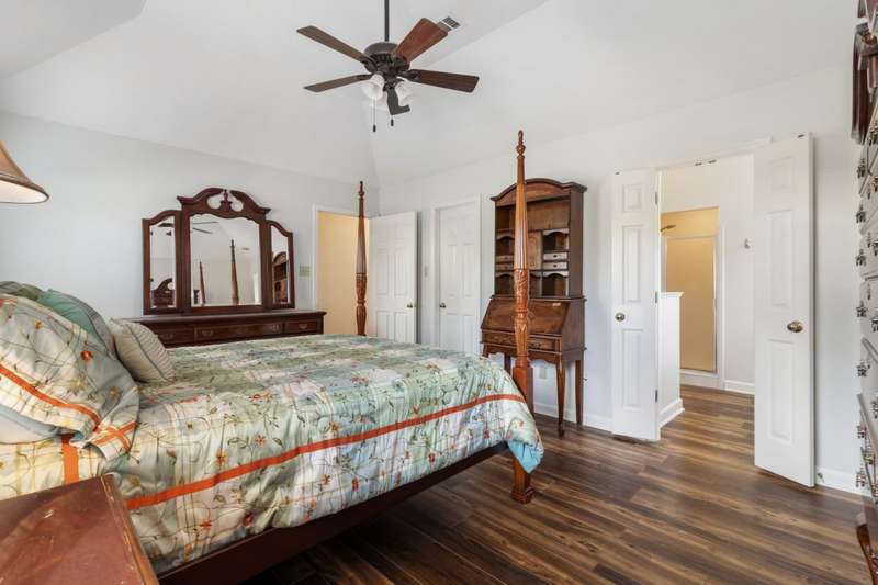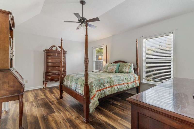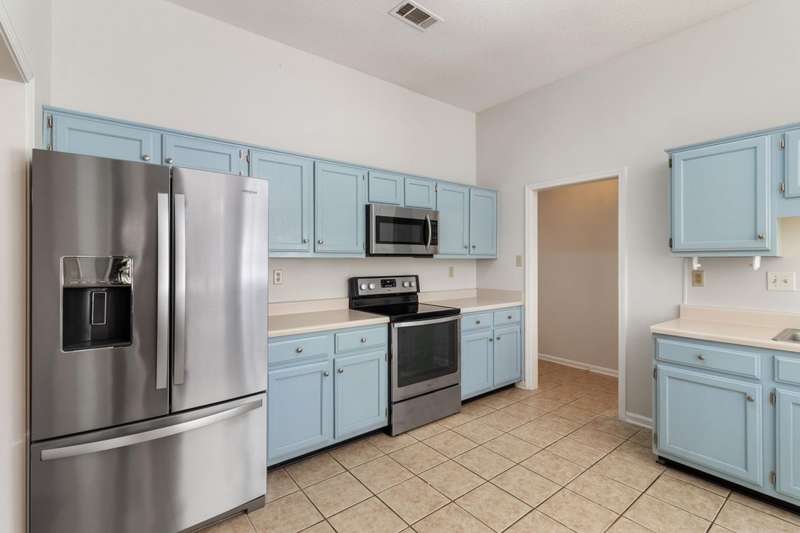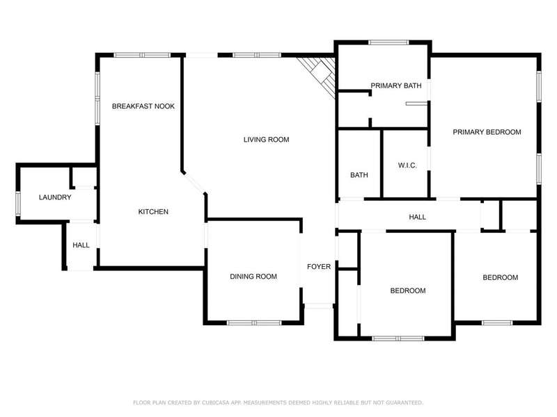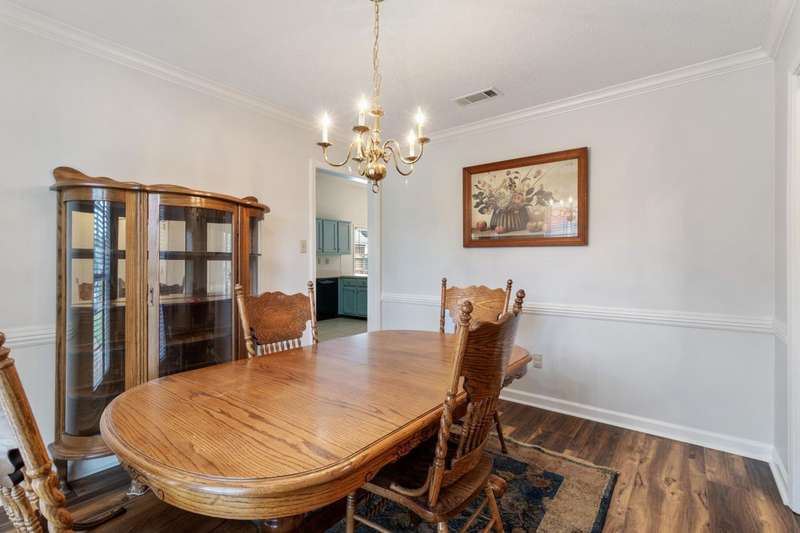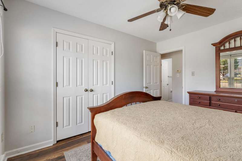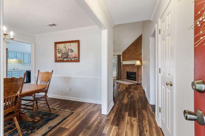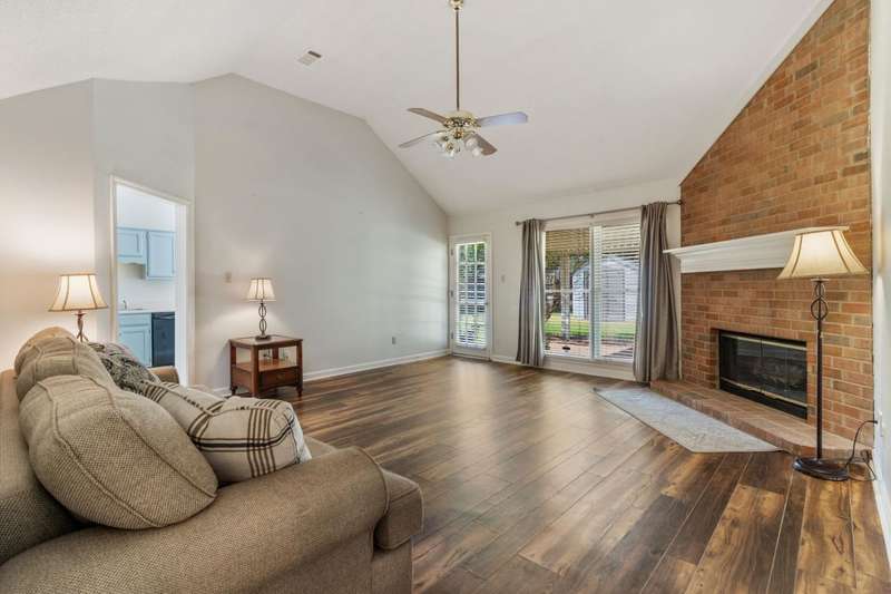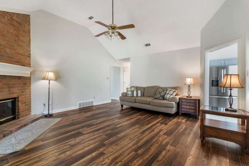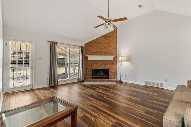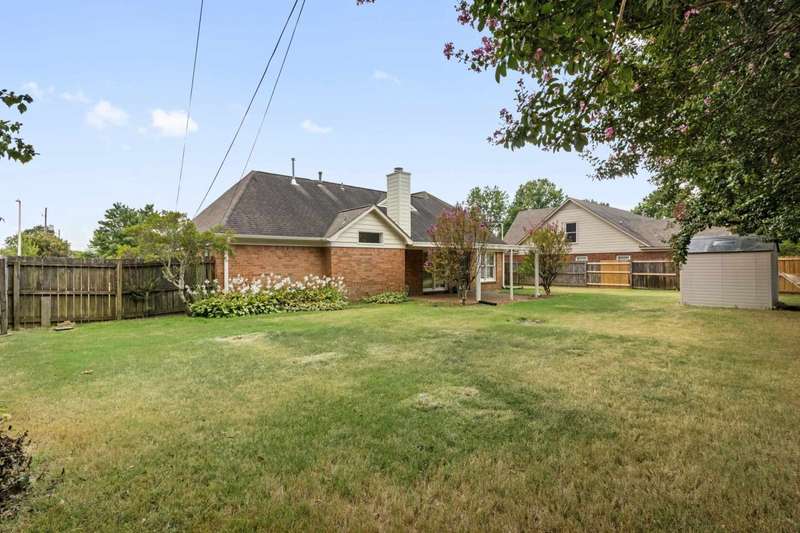 Beautiful brick 3BR 2BA with updated flooring, painted cabinetry, high ceilings, covered patio, large backyard with storage building, fresh exterior paint (with 5 year workmanship warranty) and wonderful brightly lit kitchen with lots of windows in breakfast area. Move in ready! New Water heater 2023, new trance furnace 2024!