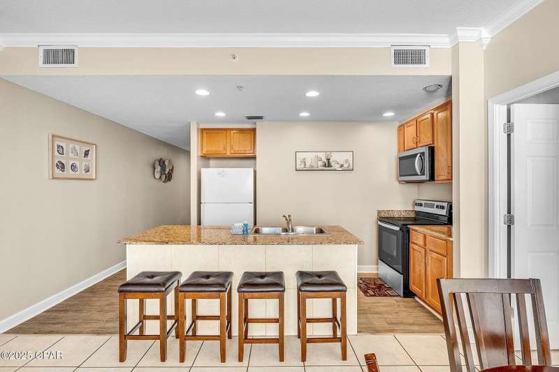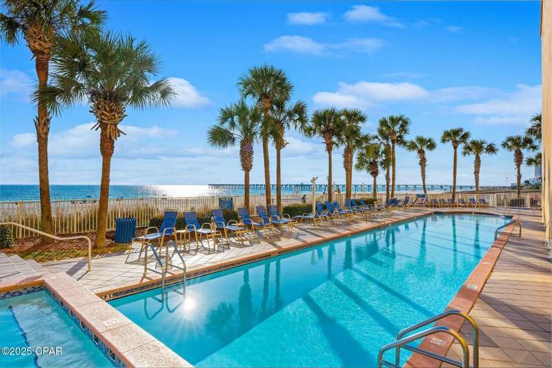 Enjoy Spectacular views of the Gulf and fishing Pier straight from this oversized balcony! With a connecting master bedroom and spacious living room, this unit is sure to impress with its easy accessibility and views from each room! This unit makes a great rental and has been upgraded with new stainless steel appliances, washer/dryer, AC unit and furniture! Close to Pier Park and local restaurants. Enjoy activities such as fishing, arcades, miniature golf, go karts, bowling, Shipwreck island water park and so much more! Book your water adventures right off the beach or enjoy relaxing by the pool. Centrally located and just 17 miles from the airport, Sterling Reef is a family oriented complex and excellent choice for a vacation rental or second home. Come see it today!