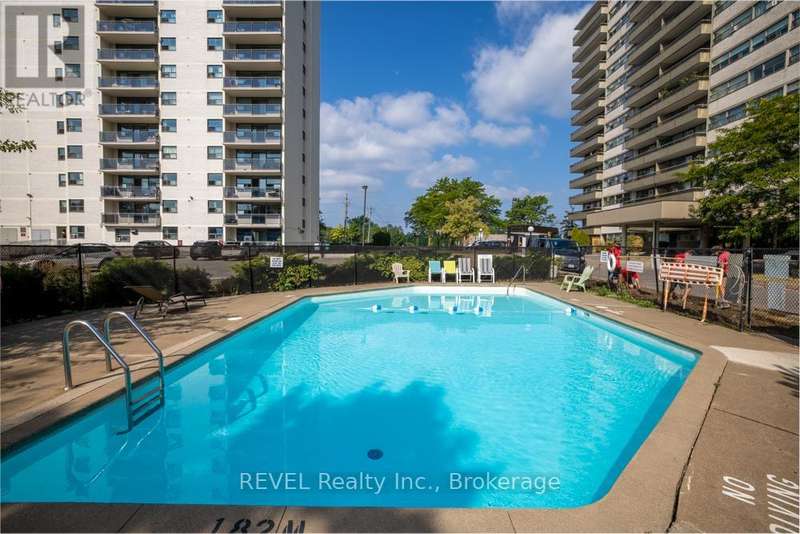 The building at 215 Glenridge has visitor parking, inground pool, bright laundry room, party room and an inviting entry. Major components of the building have been updated. Condo fee includes all utilities except internet and parking fee. Large balcony is approx. 19' x 5' with wonderful views overlooking Old Glenridge. The suite has 2 spacious bedrooms, one 4PC bath, open style living room and dining area that opens to the balcony. The kitchen has been updated and includes Fridge and Stove. The fresh coat of paint throughout provides a very bright, clean and inviting suite. Currently the inside parking spot #56 is assigned to Suite 1104. Bell Fibe internet available. Great location; close to the local plaza, downtown St Catharines, Pen Centre shopping center, and just minutes up the hill to Brock University. (id:7434)