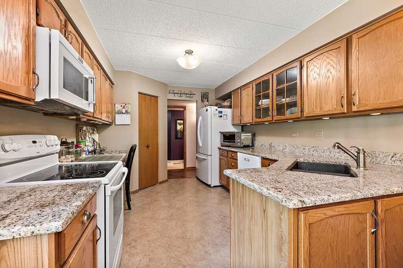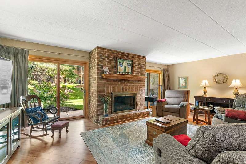 NO STAIRS! First-floor end unit tucked away at the end of a quiet cul-de-sac. Pride of ownership shines throughout this meticulously maintained oversized condo. Featuring a spacious open floor plan with stunning hardwood floors in most rooms, this home offers generous living spaces starting with the inviting living room highlighted by a center brick fireplace. The bright kitchen with bay window flows beautifully to the dining area and out to a 22' balcony. French doors open to a huge primary suite with walk-in closet, whirlpool tub, separate shower, and dual sinks.Enjoy the Oak Hills Country Club lifestyle, complete with outdoor pool, tennis and pickleball courts, clubhouse, golf, social clubs, and so much more!