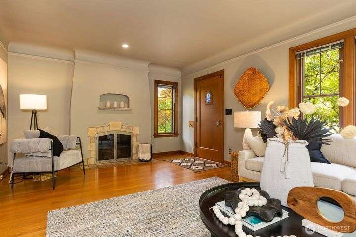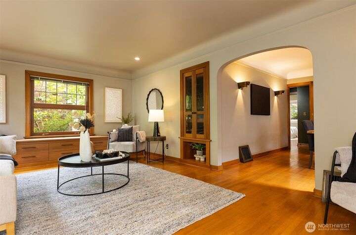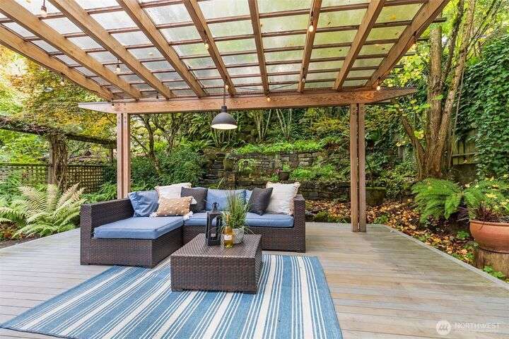 Drive down the quiet tree lined street to this darling blue Tudor just blocks to everything QA has to offer. Charm intact, but full of updates inside and out. The over sized living & dining rooms boast wood floors and custom wood finishes. The updated kitchen features views out to the ultra secluded and low maintenance backyard with covered deck and terraced garden. Two generous-sized bedrooms with full bath on the main level, and a 3rd bed (or flex room/office) in the basement w/ 3/4 bathroom. Completely renovated lower level with polished concrete floors, shop space, laundry room, and custom storage built-ins. With extra driveway parking and proximity to SLU/99/QA and transit, this is the in-city oasis you seek!